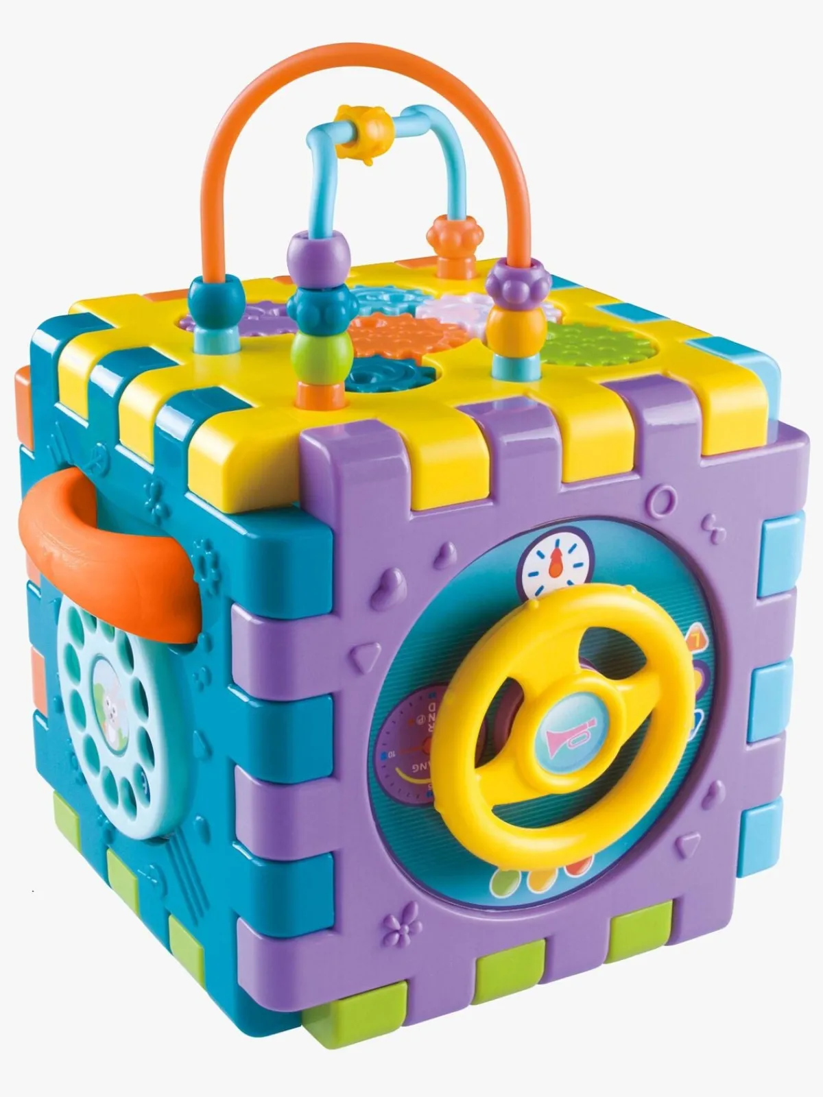 – Puttekasse, rat, klaver, drejetelefon, dør med spejl og tandhjul, der kan dreje.