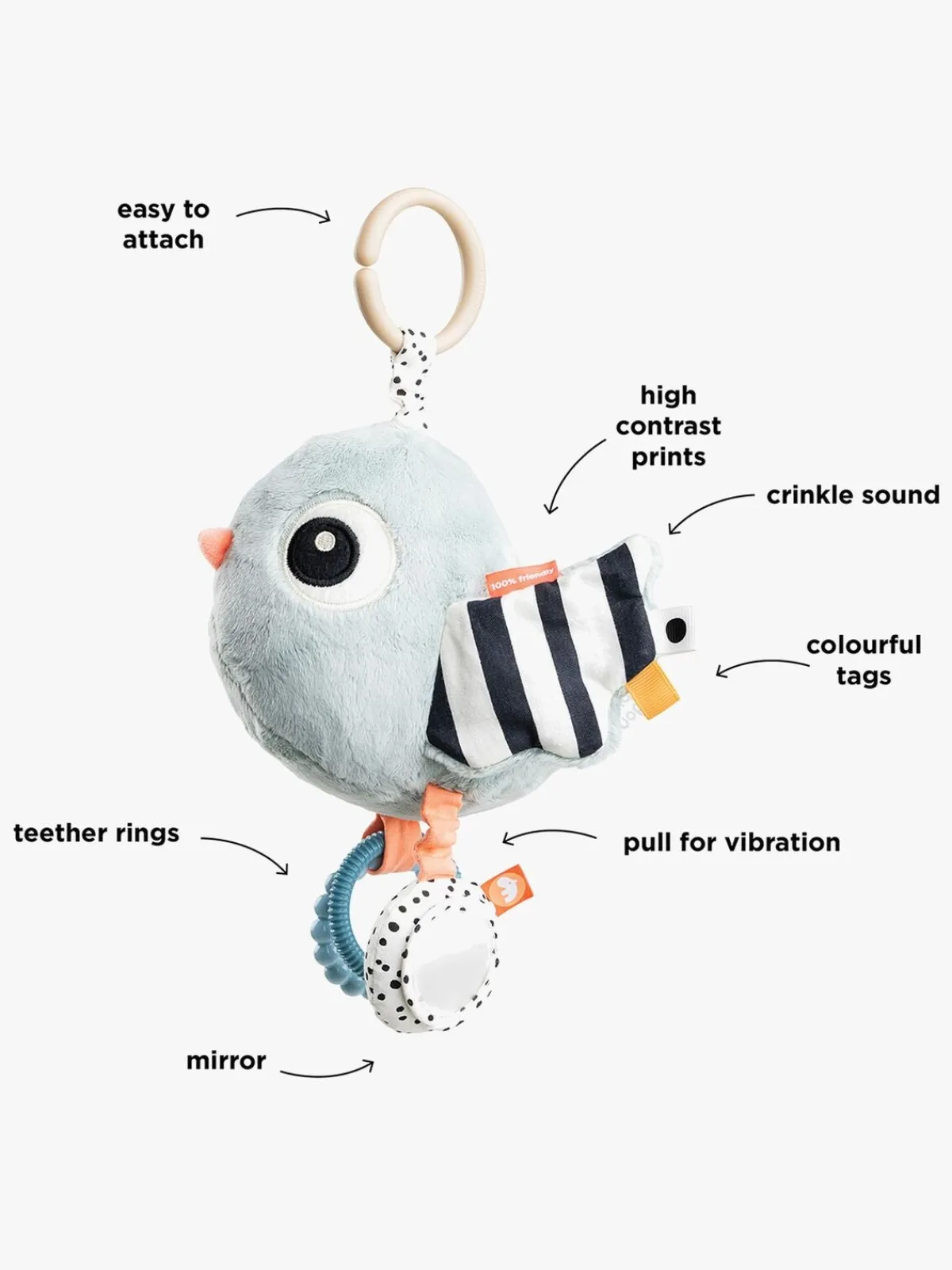 – Kan sættes fast på vuggen, klapvognen, barnevognen eller autostolen.
