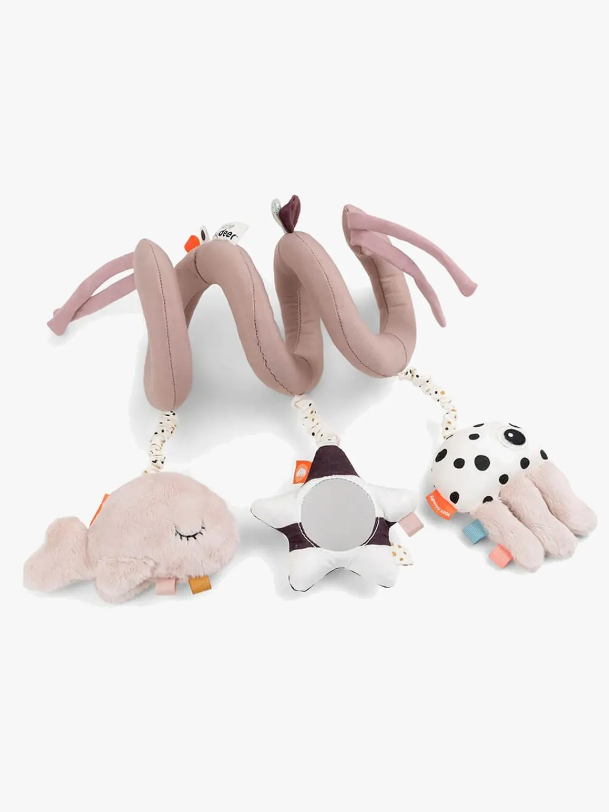 | Materiale | Legetøj: 50 % bomuld, 50 % polyester. Fyld: 100 % polyesterfiber. Spiral: 100 % polyester. |
