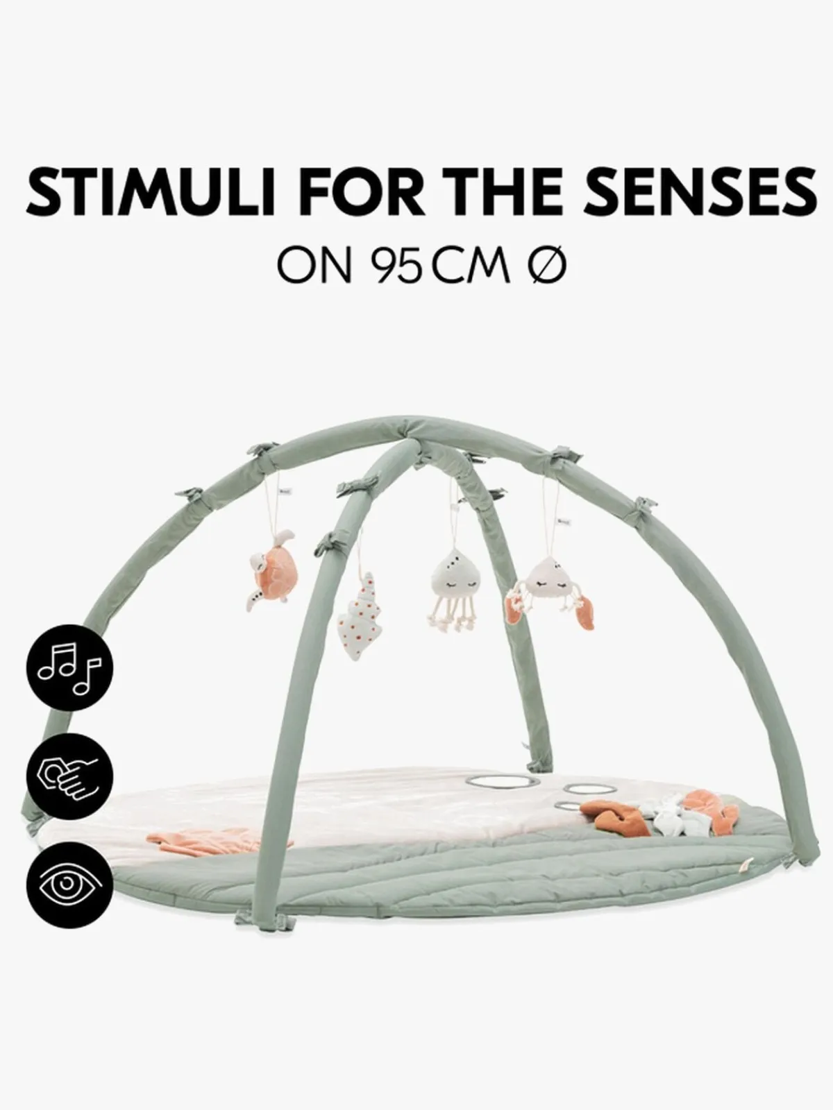 – Bøjlerne kan tages af, så aktivitetscentret kan fungere som et legetæppe.