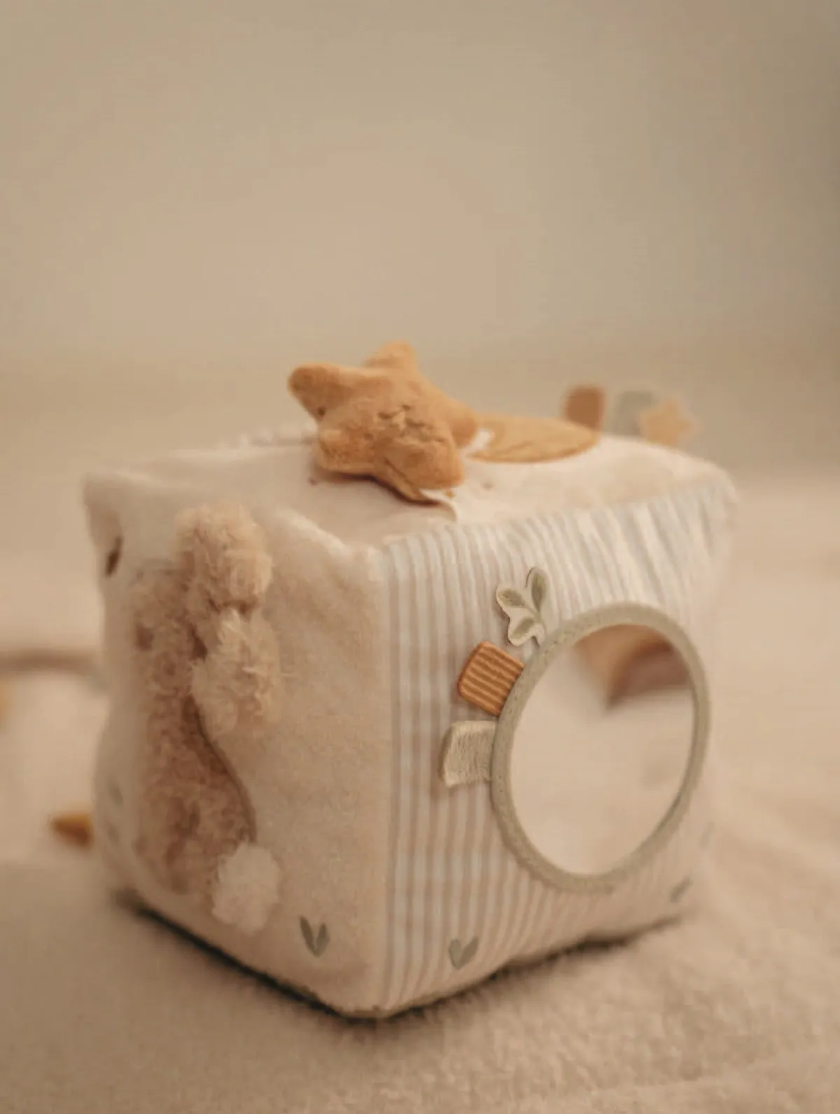 – Sjove farver og et spejl til visuel stimulering.