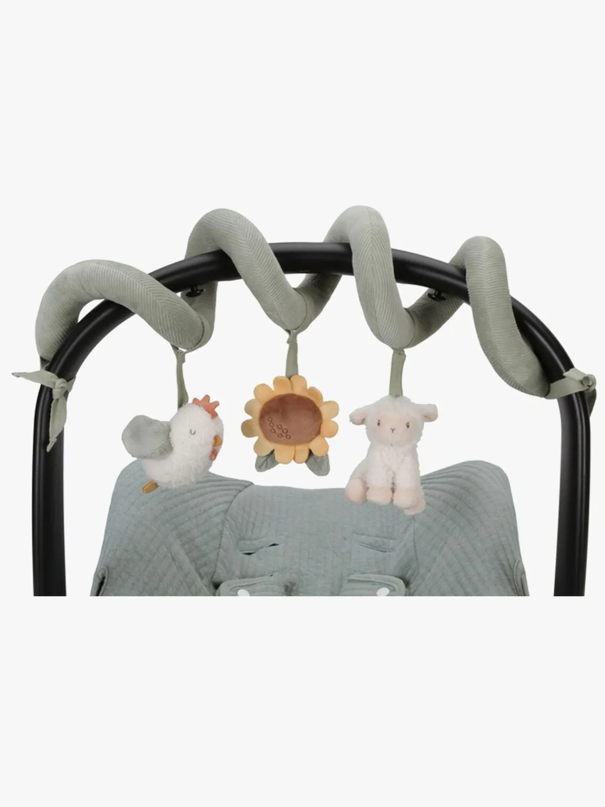 – Advarsler: For at forhindre mulige skader pga. sammenfiltring skal du fjerne dette legetøj, når barnet begynder at forsøge at komme op på hænder og knæ.