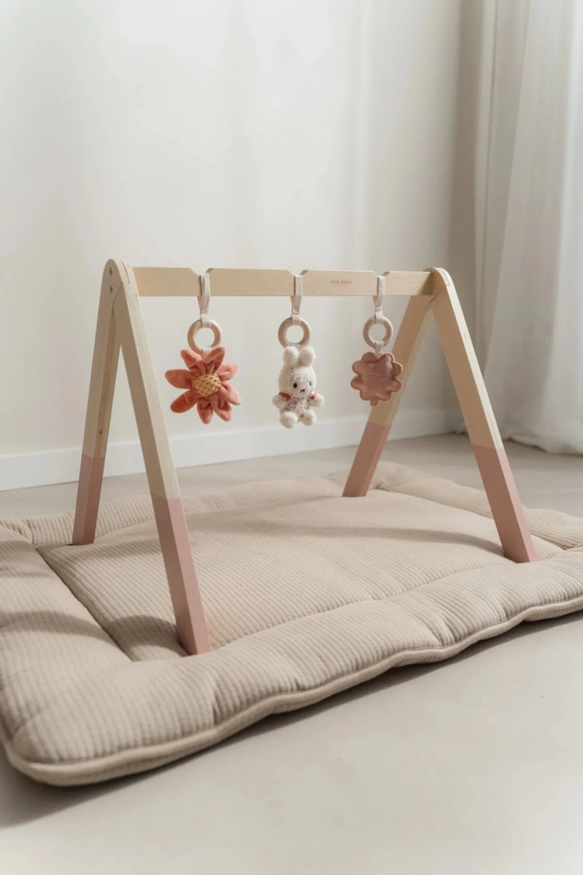 – Advarsler: For at forhindre mulige skader pga. sammenfiltring skal du fjerne dette legetøj, når barnet begynder at forsøge at komme op på hænder og knæ.