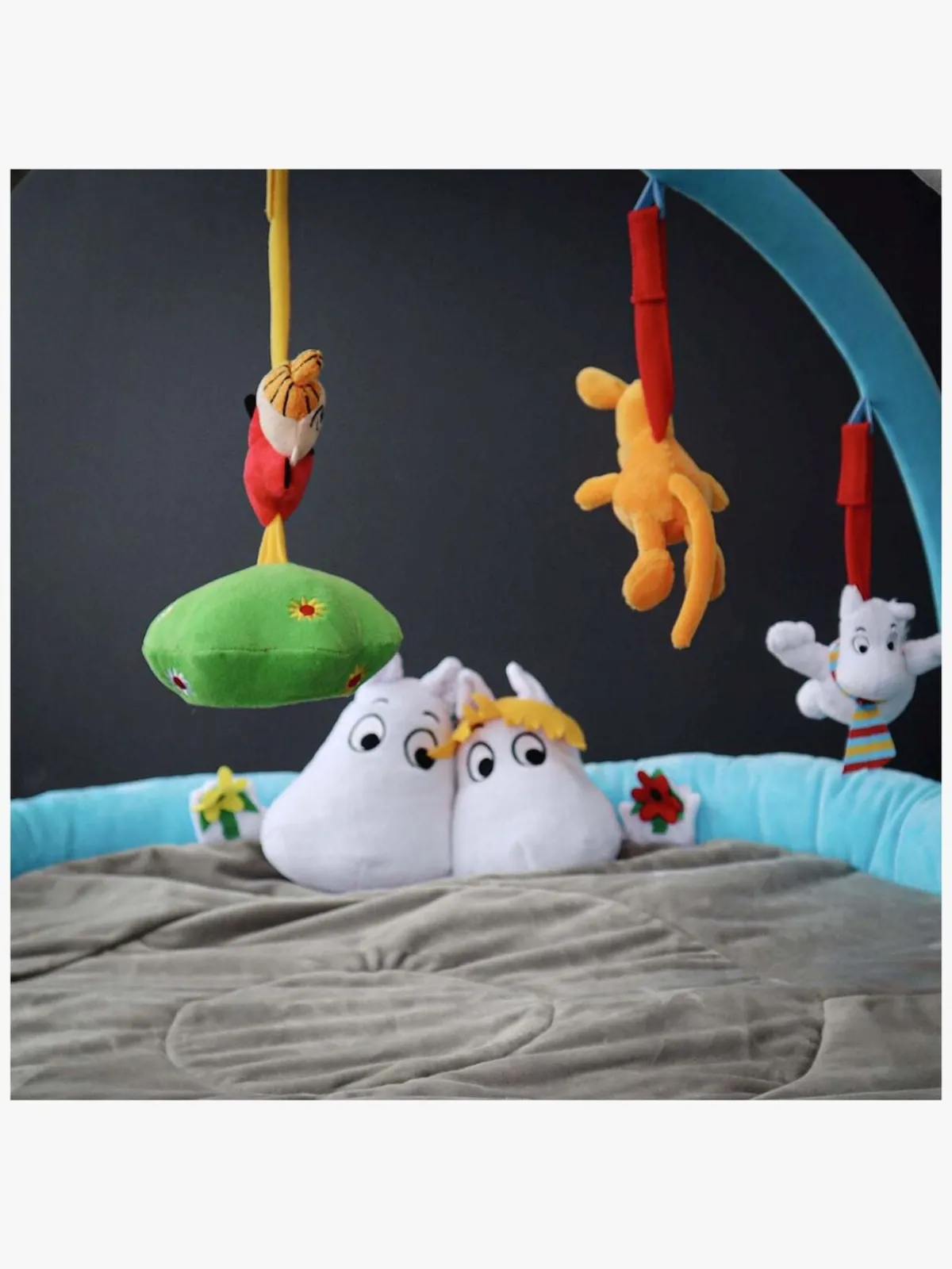 Figurer: Mummi og hans venner. Farverigt og med hængende, aftageligt legetøj.