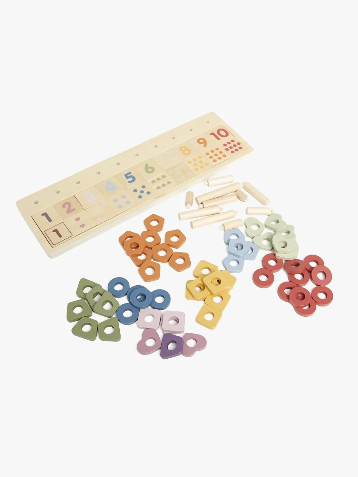 – Indeholder: 55 træringe, 20 kvadratiske dele.