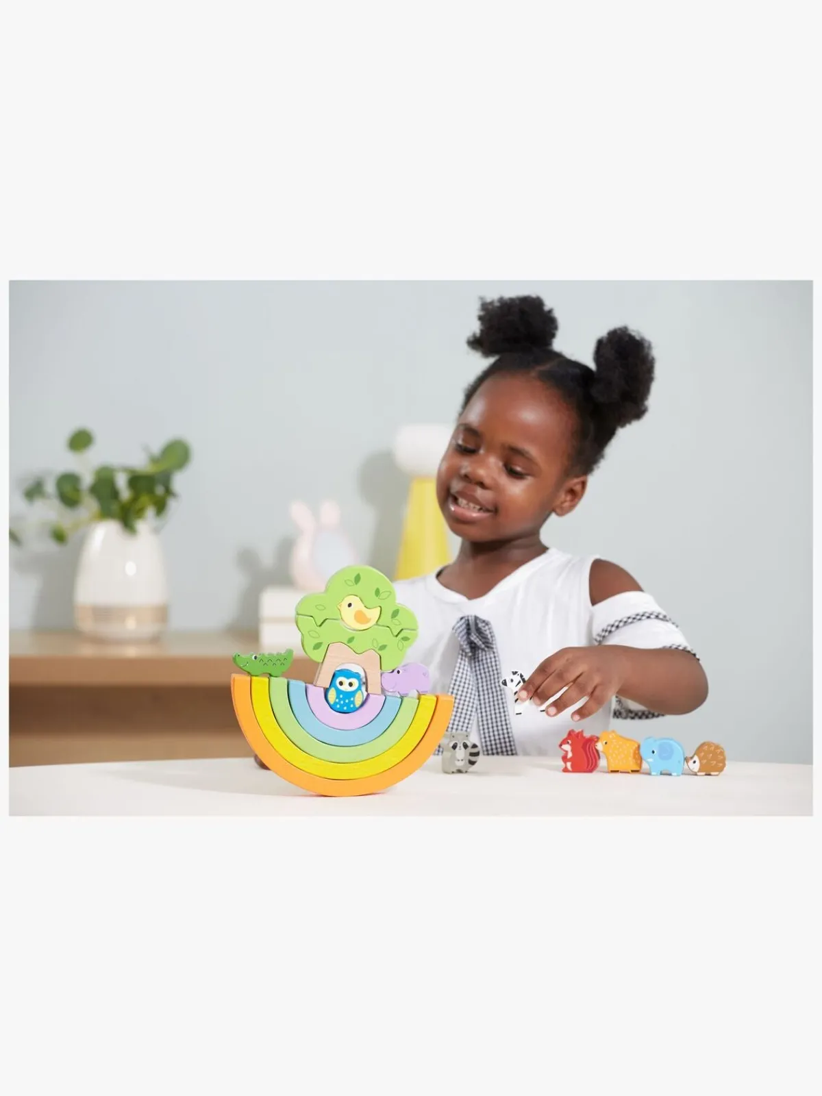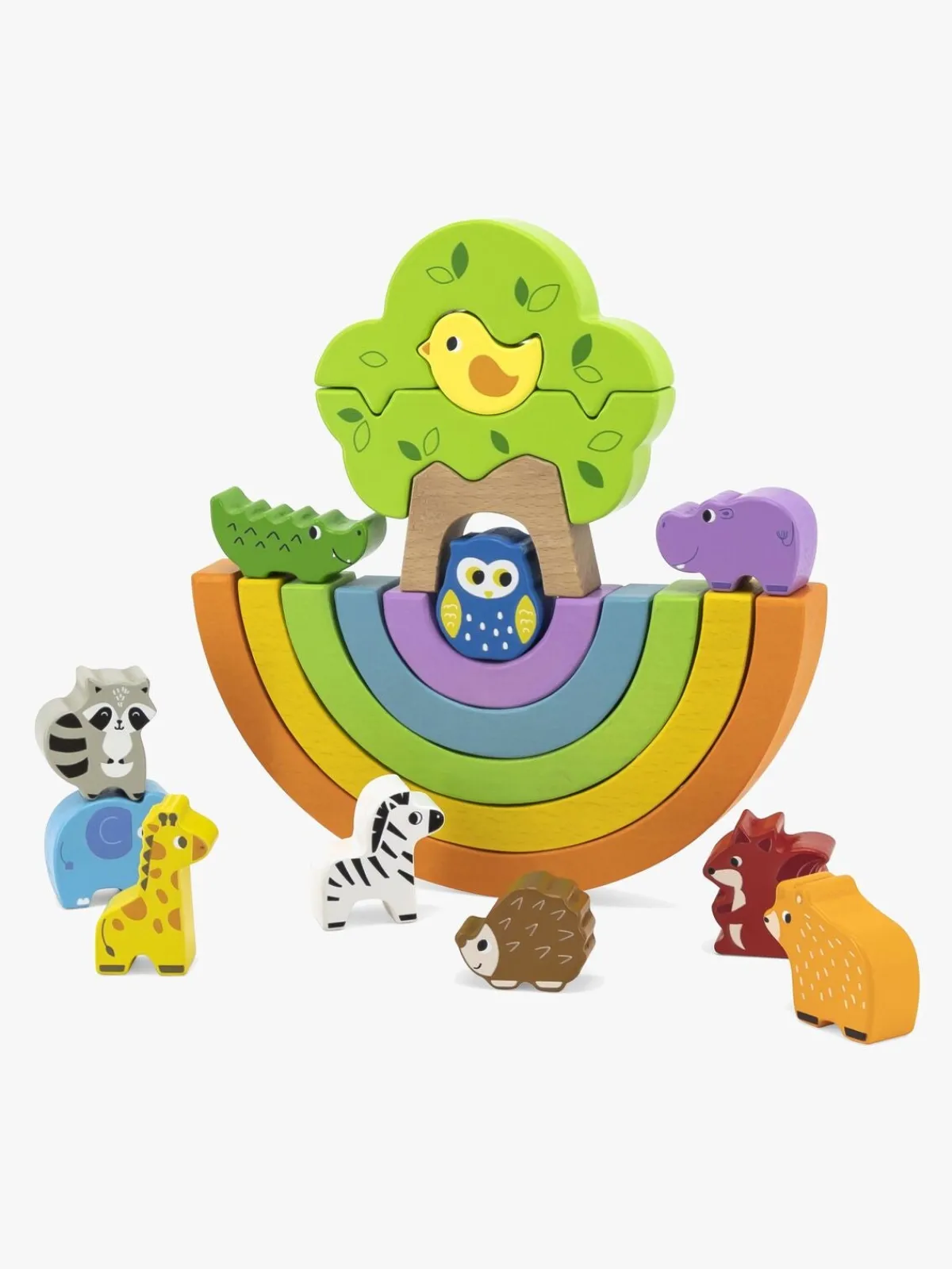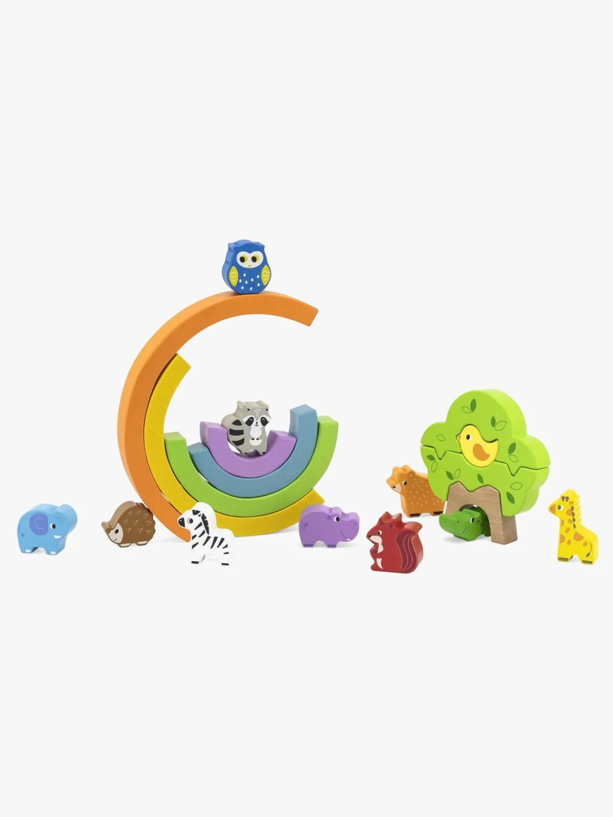 – Indeholder: 5 regnbueformede klodser, 11 dyr, 3 træformede klodser.