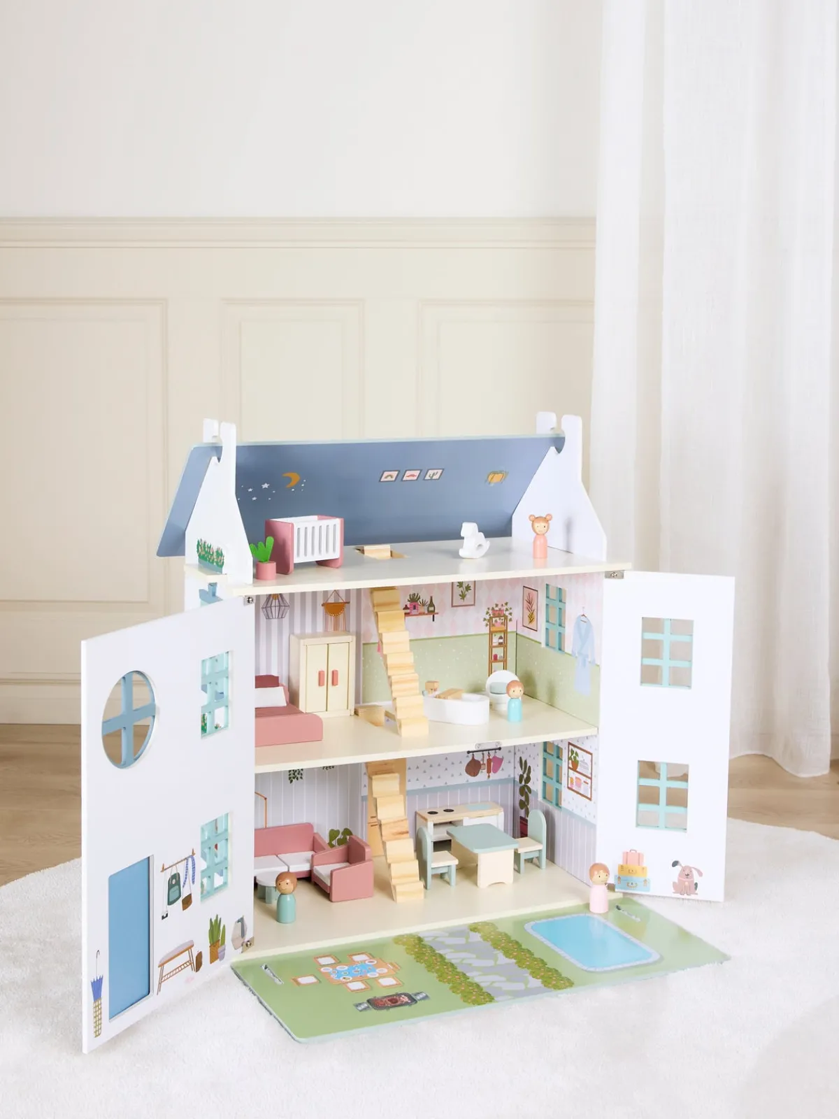– Komplet møbelsæt til dukkehus.
