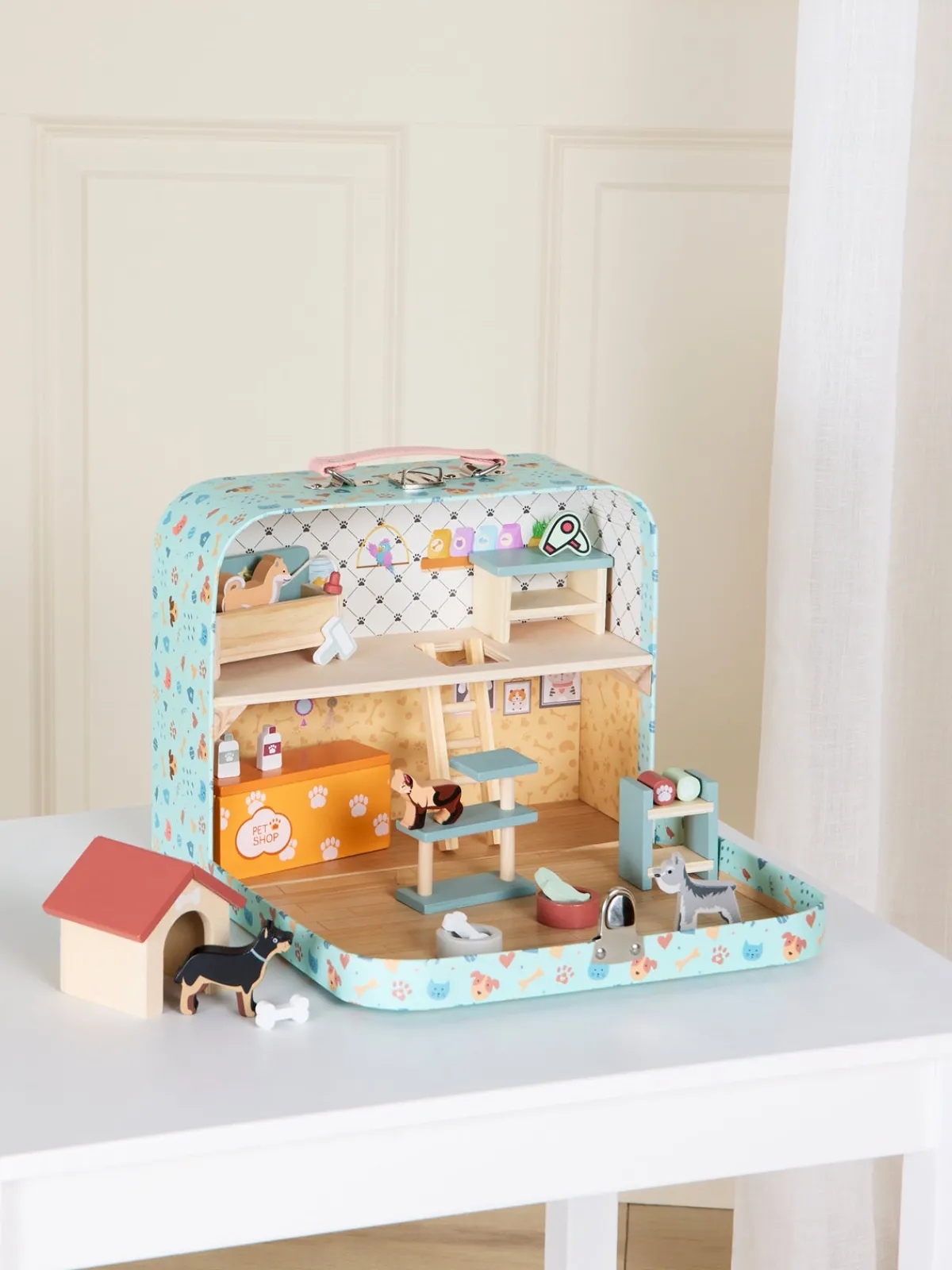 – Komplet møbelsæt til dukkehus.