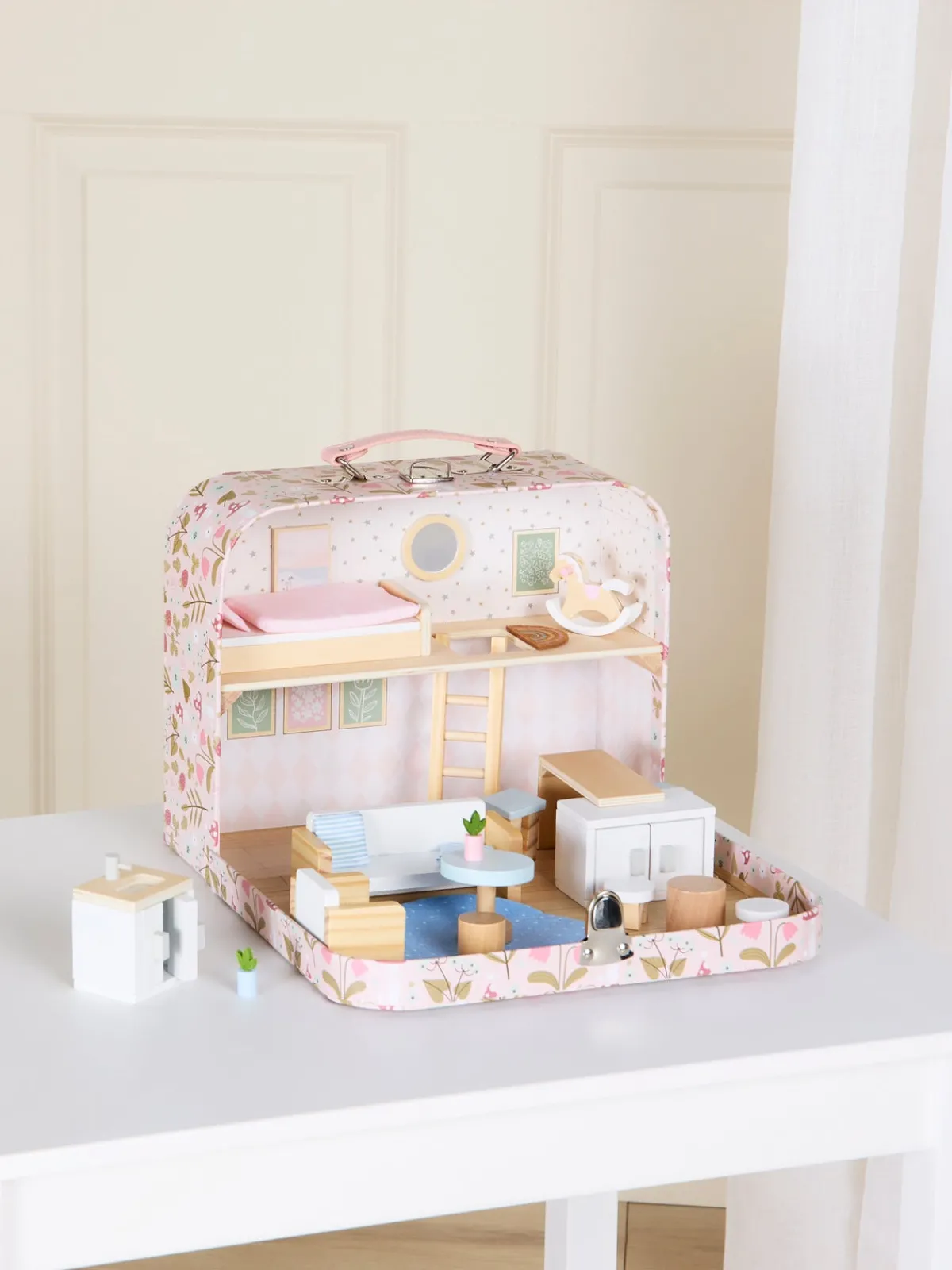 – Komplet møbelsæt til dukkehus.