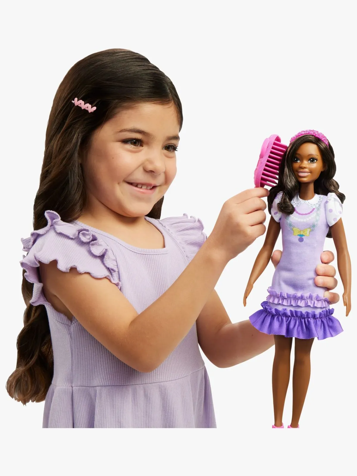 – My First Barbie er en kollektion designet til børnehavebørn og har større dukker, der er nemme at klæde på og med kroppe, der kan stilles i forskellige stillinger og er bløde at røre ved.