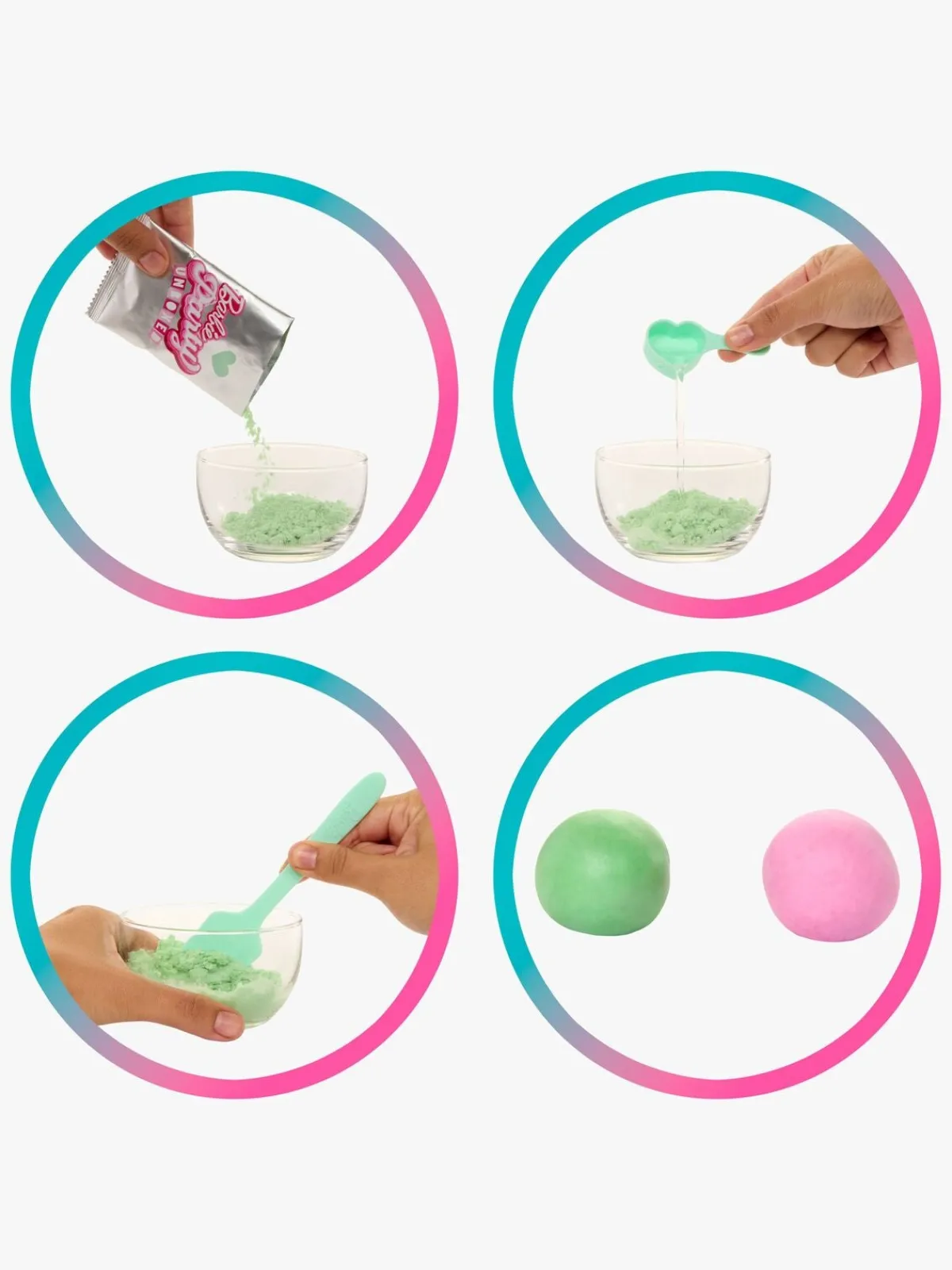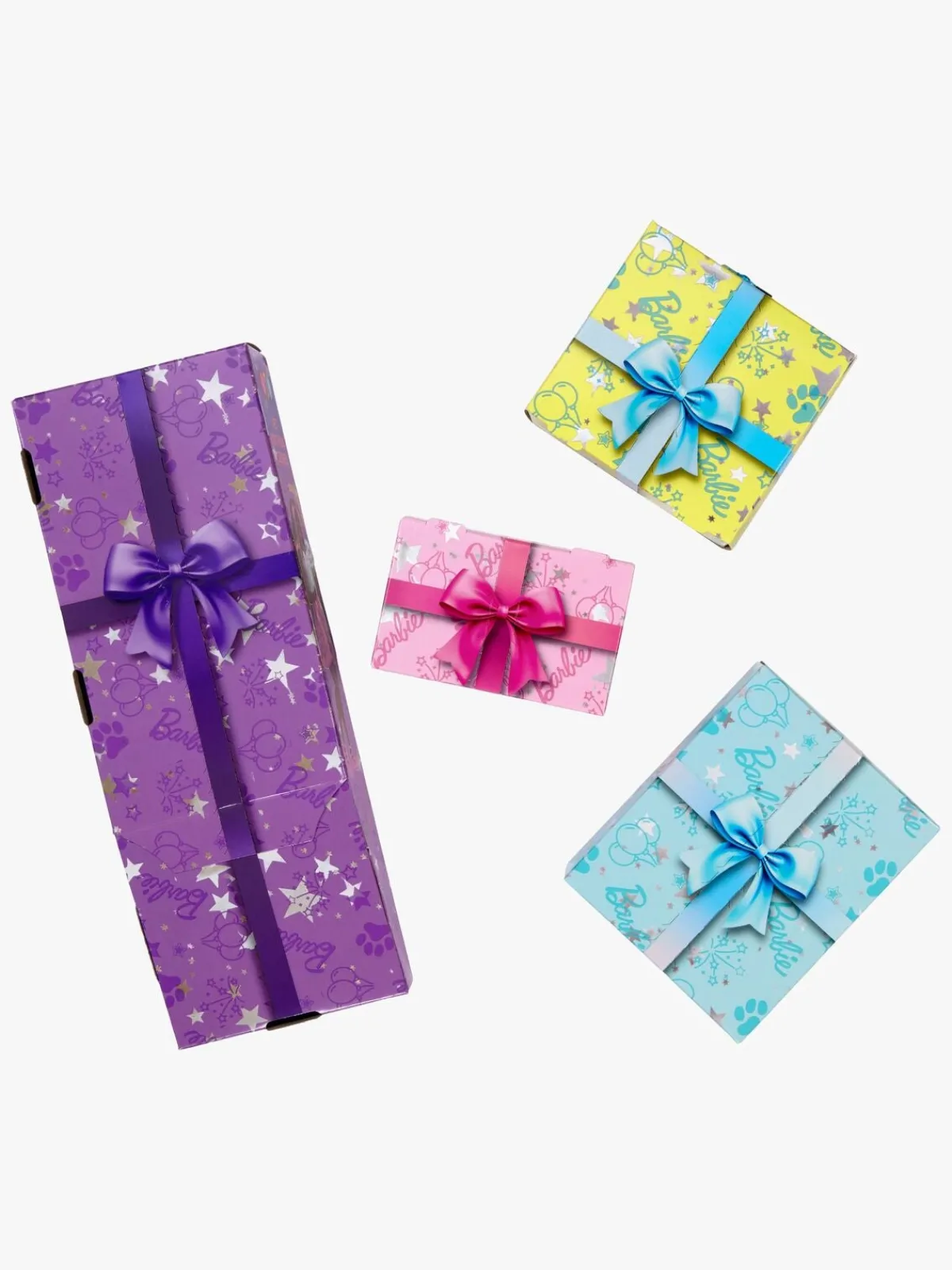 – Indeholder: 1 barbiedukke, 1 hund, 1 fødselsdagskage, 4 gaver, 1 form, 2 redskaber, 2 dejblandinger.