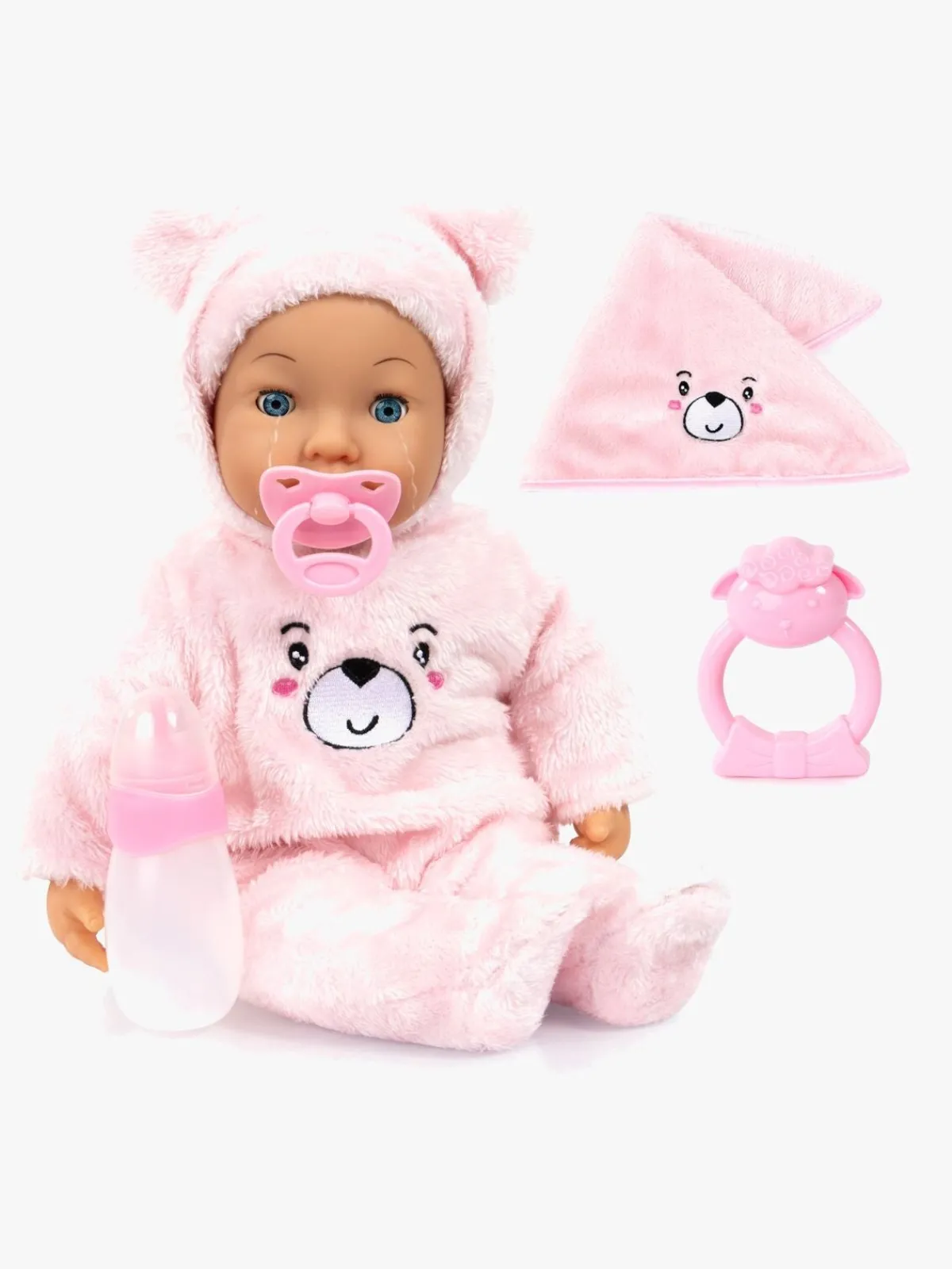 – Indeholder: 1 sæt tøj, 1 dukke, 1 sut, 1 sutteflaske, 1 tæppe.