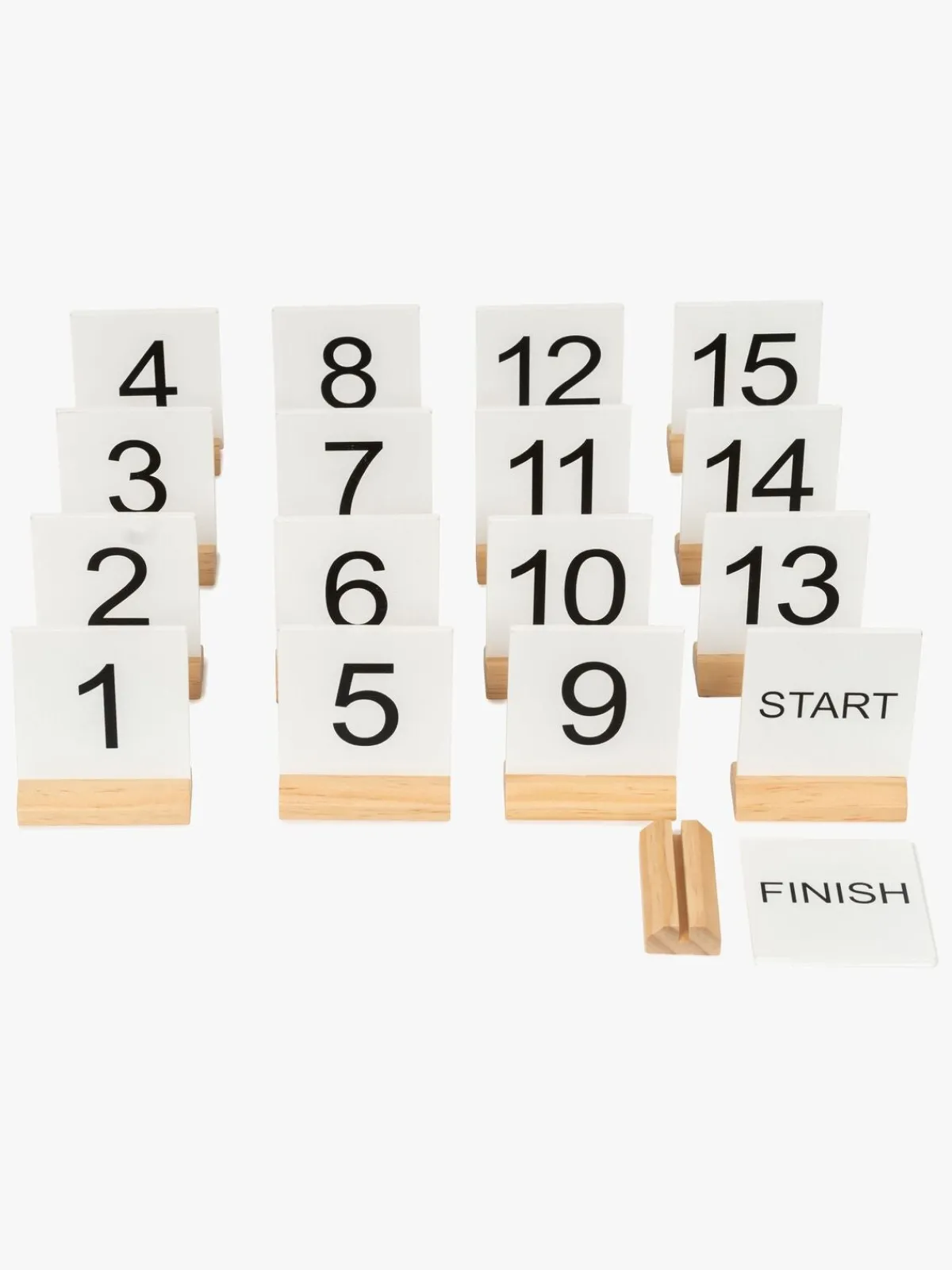 – Hver markør er dobbeltsidet med bogstaver (A-F) på den ene side og tal (1-15) på den anden.