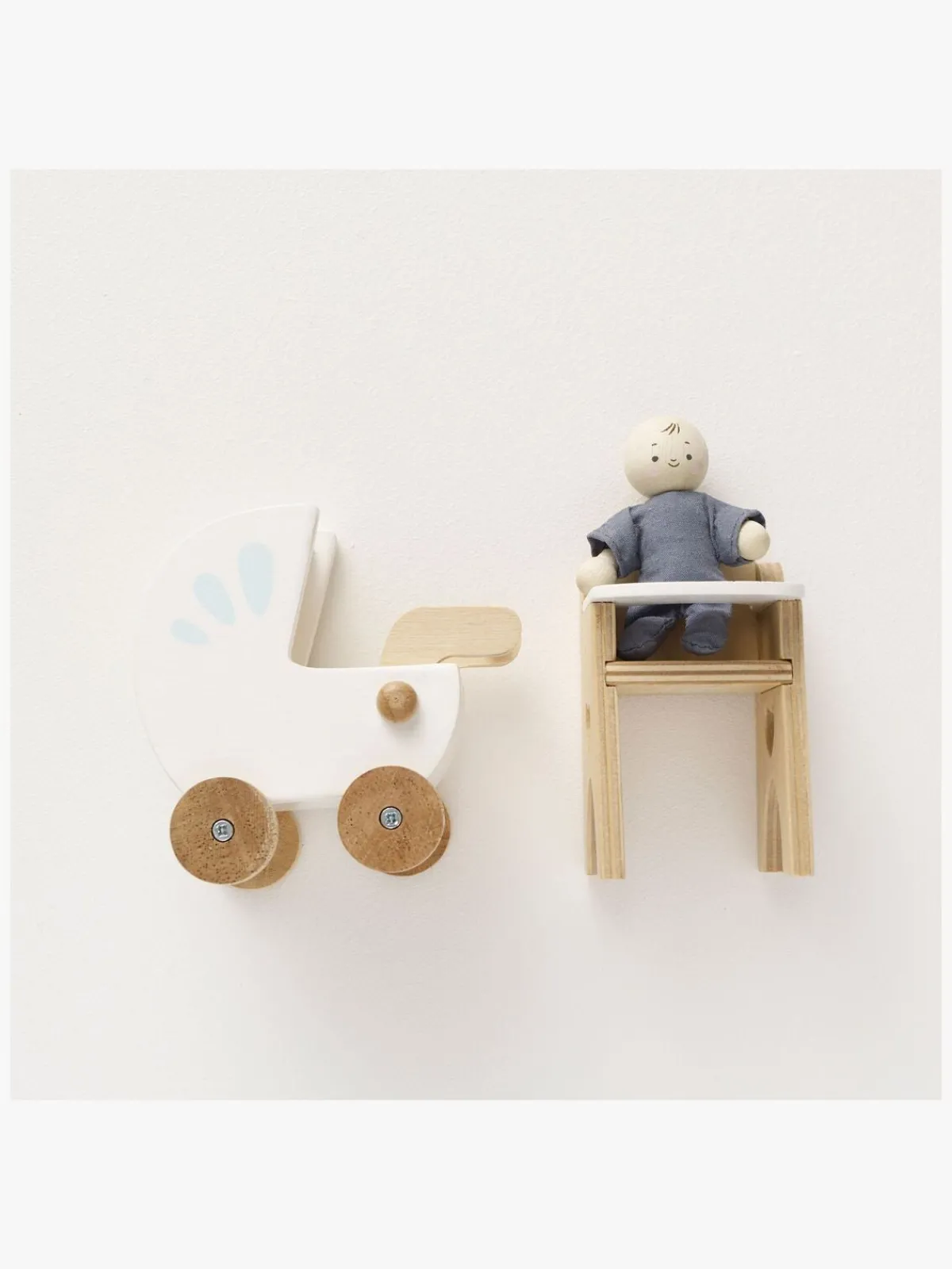 – Indeholder: 1 barnevogn med et tæppe, 1 højstol med en hagesmæk, 1 baby.
