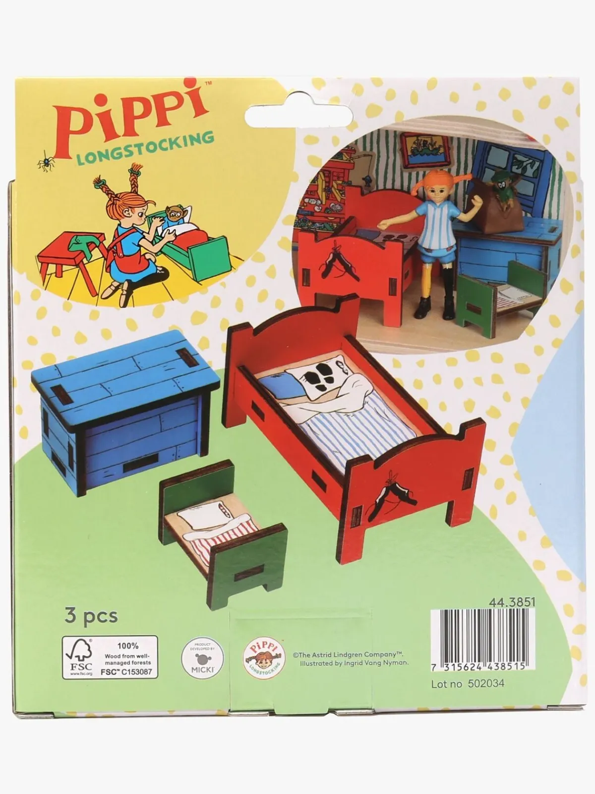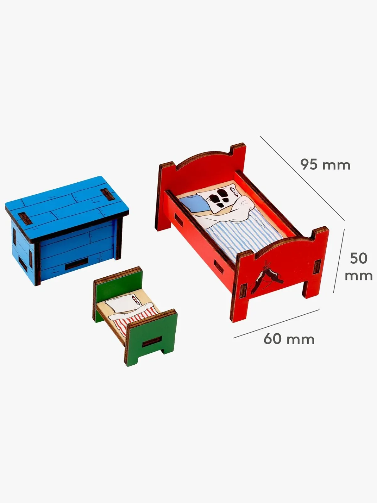 – Indeholder: 1 Pippi-seng, 4 Hr. Nilsson-senge, 1 skattekiste.