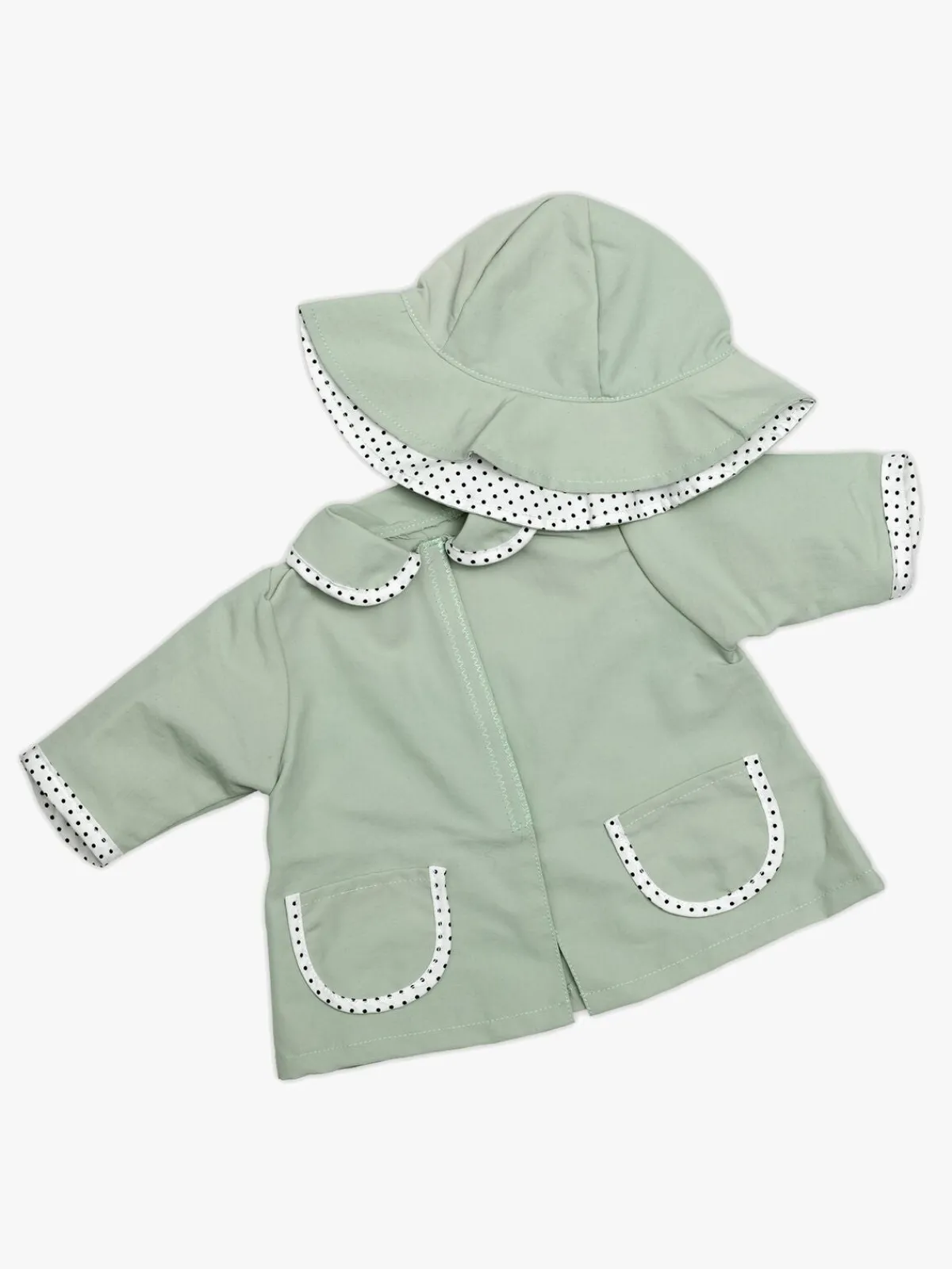 Regntøjet passer til dukker, der ca. er 45 cm.
