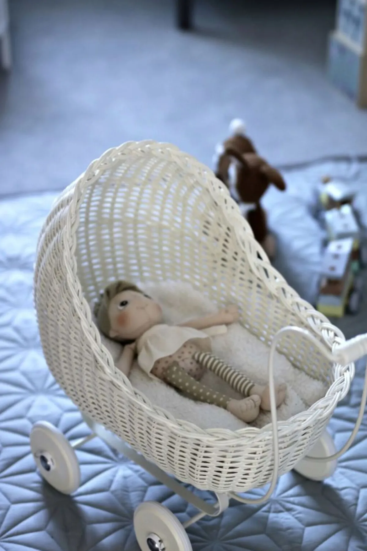 Bemærk: Kun dukkevognen indgår. Sengetøj m.m. købes separat.