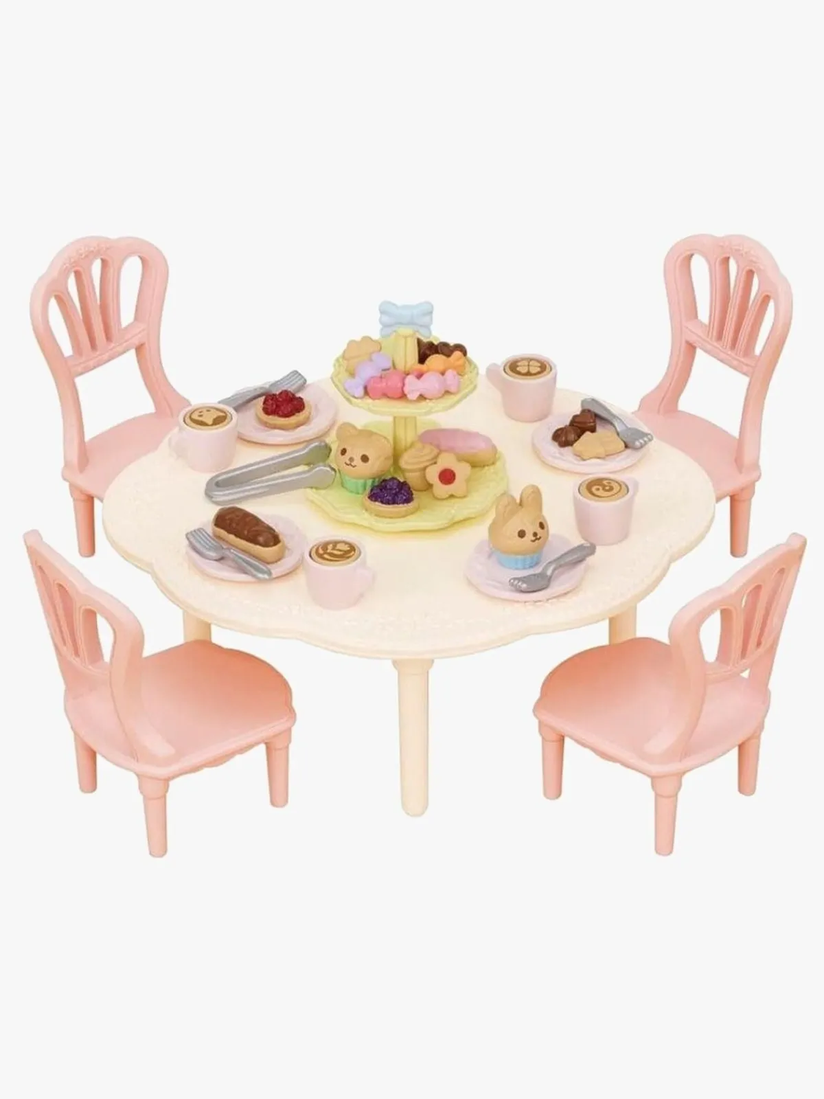 – Indeholder: 1 bord, 4 stole, 1 kagefad, 4 tallerkener, 4 gafler, 4 kaffekopper, 4 kaffer, 1 tang, 16 kager og søde sager.
