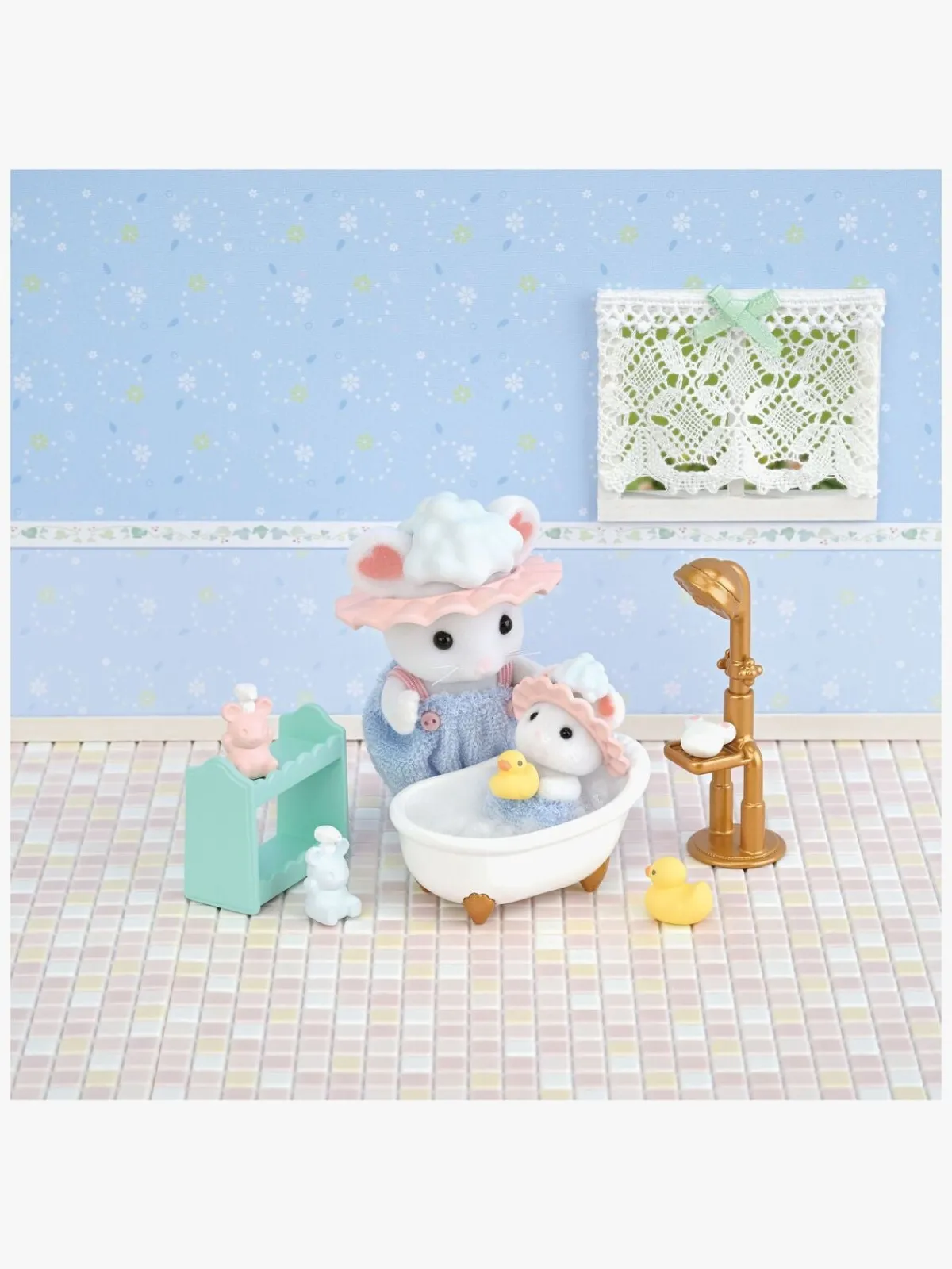 – Indeholder: 2 musefigurer, 1 badekar, 1 bruser, 8 tilbehør.