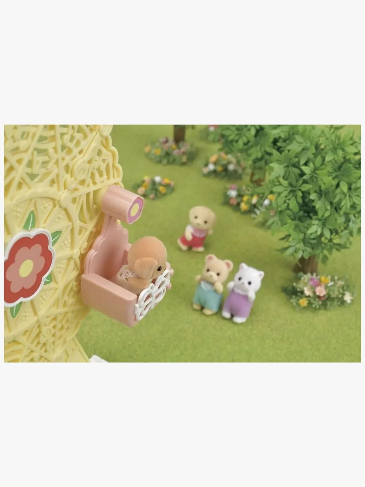– Der er plads til 3 Sylvanian Families-babyer (kun 1 figur medfølger).