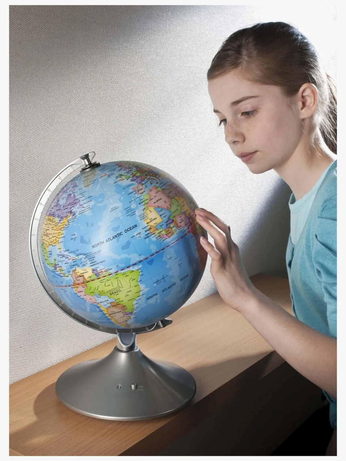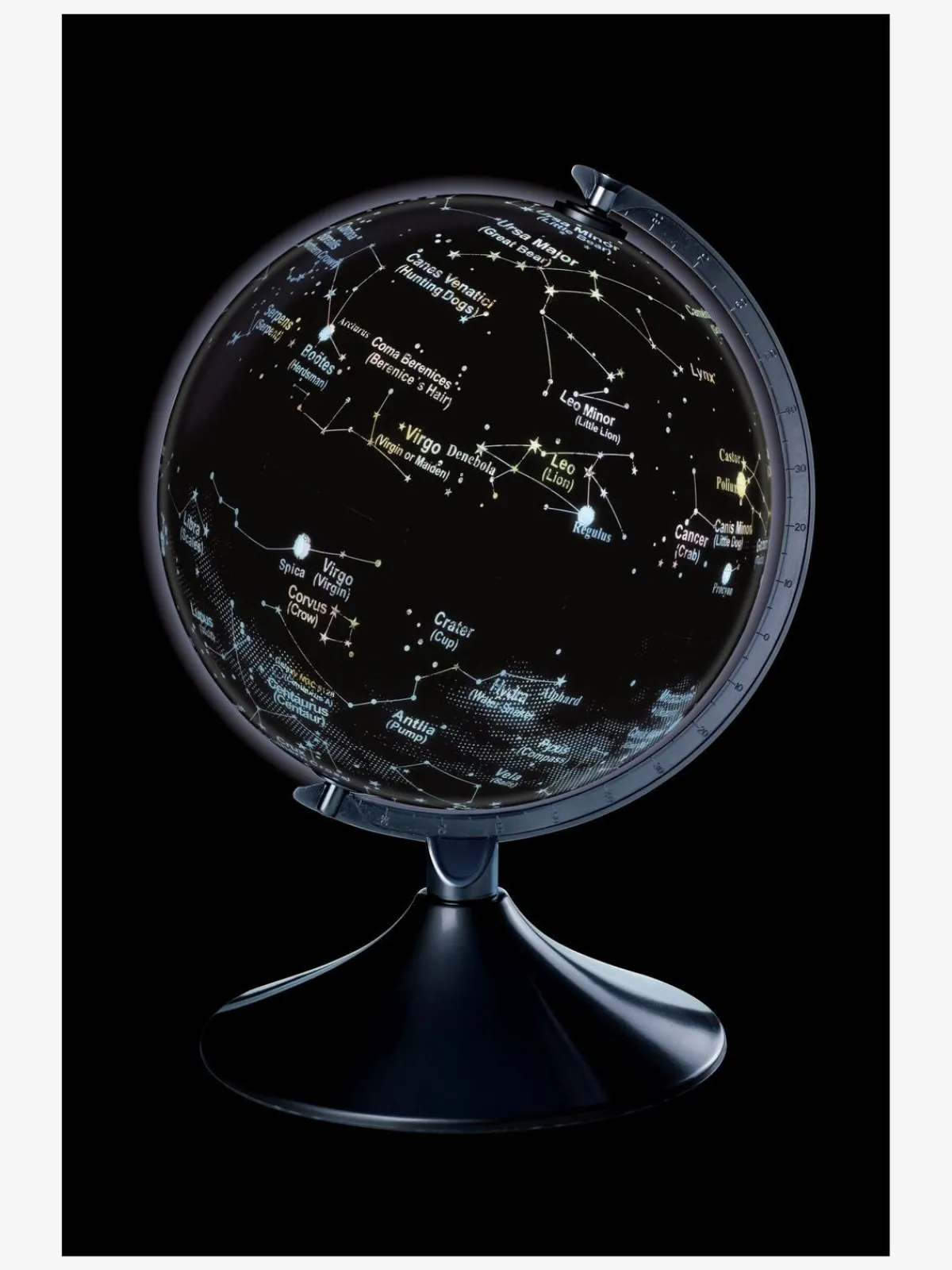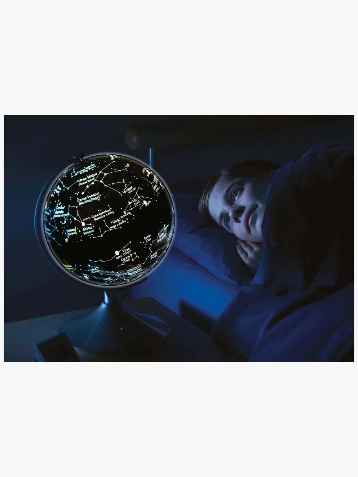 – Viser Jorden om dagen og et stjernekort om natten.
