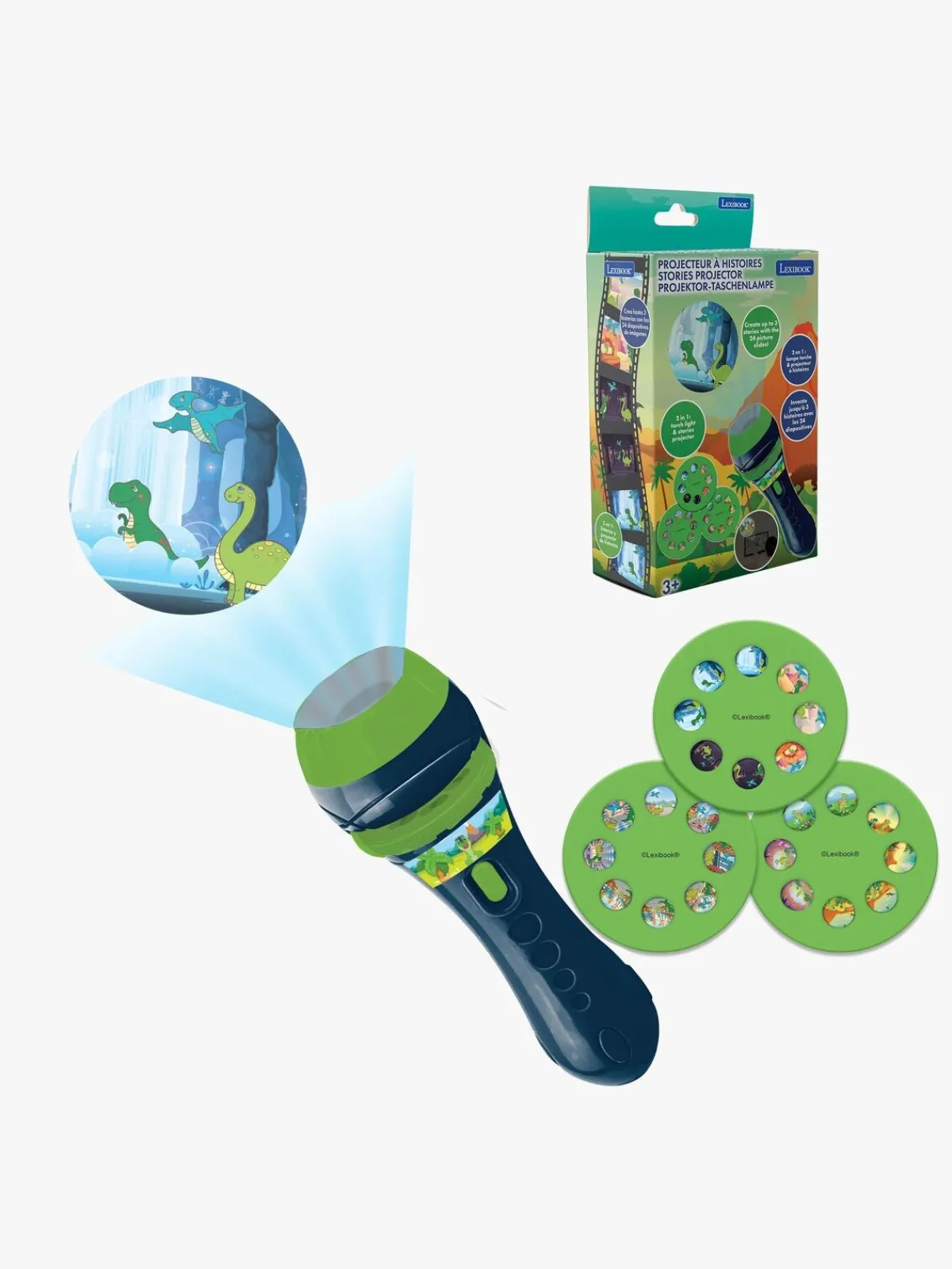 – 2-i-1 lommelygte og projektor.
