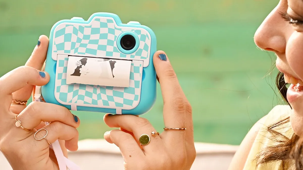 – Indeholder: 1 polaroidkamera, 4 papirruller, 1 klistermærkeark, 4 tusser, 1 opladekabel, 1 brugsvejledning.