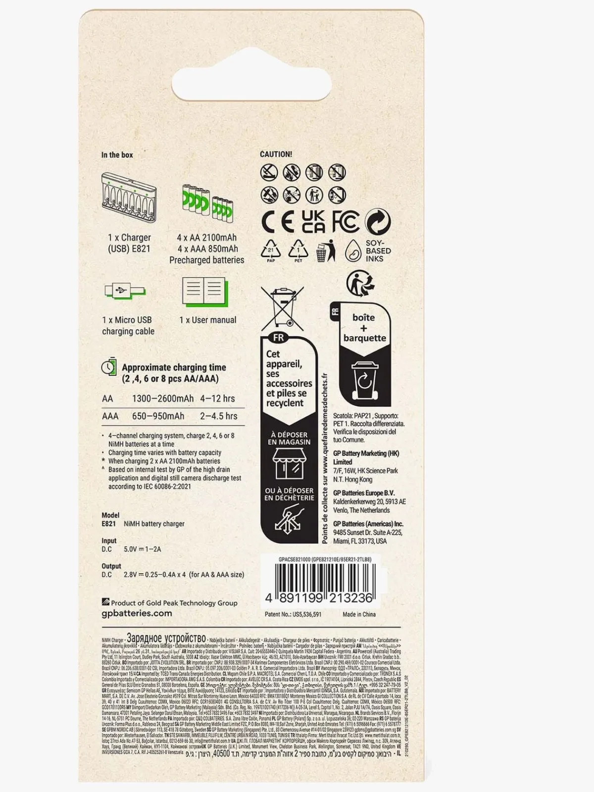 Elektronik & Media-GPBatterier GP Batterier Recyko E821 8-Slot Charger, 4 AA + 4 AAA