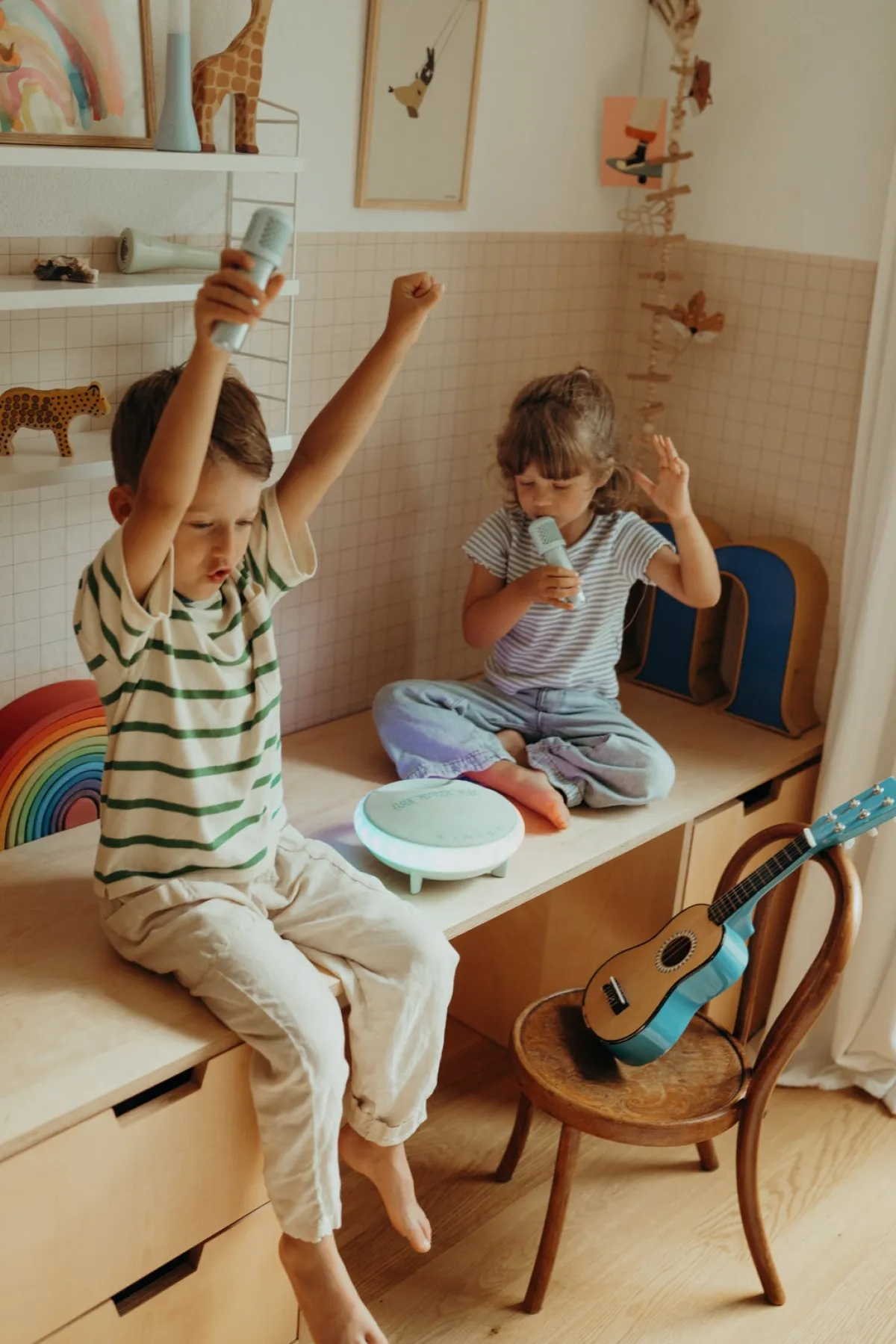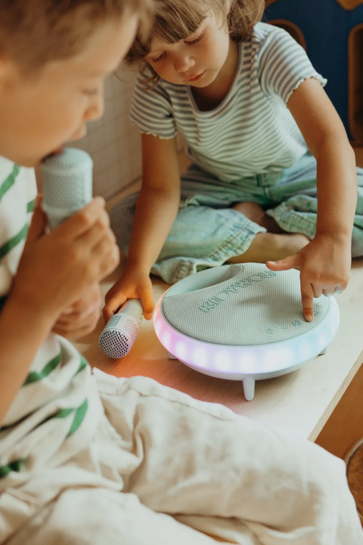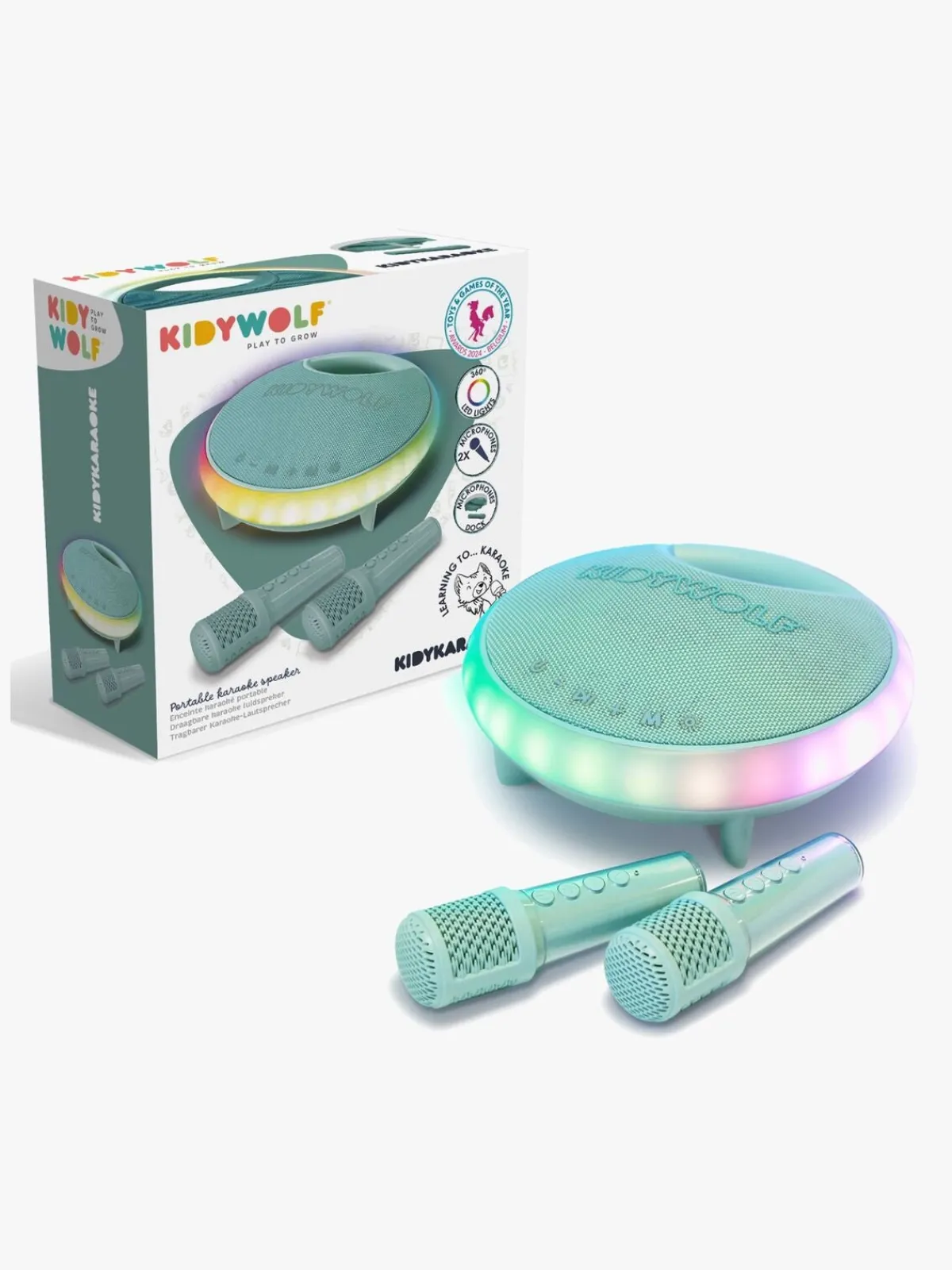 – 2 trådløse karaokemikrofoner.
