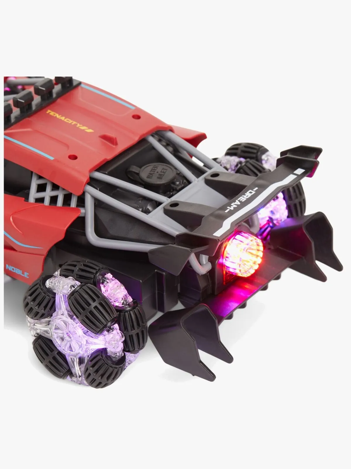 Bilen har forskellige funktioner som lys og styreafstand på ca. 15-20 meter. Opladningstiden er en time, og bilen kan køre 20 minutter på en opladning.