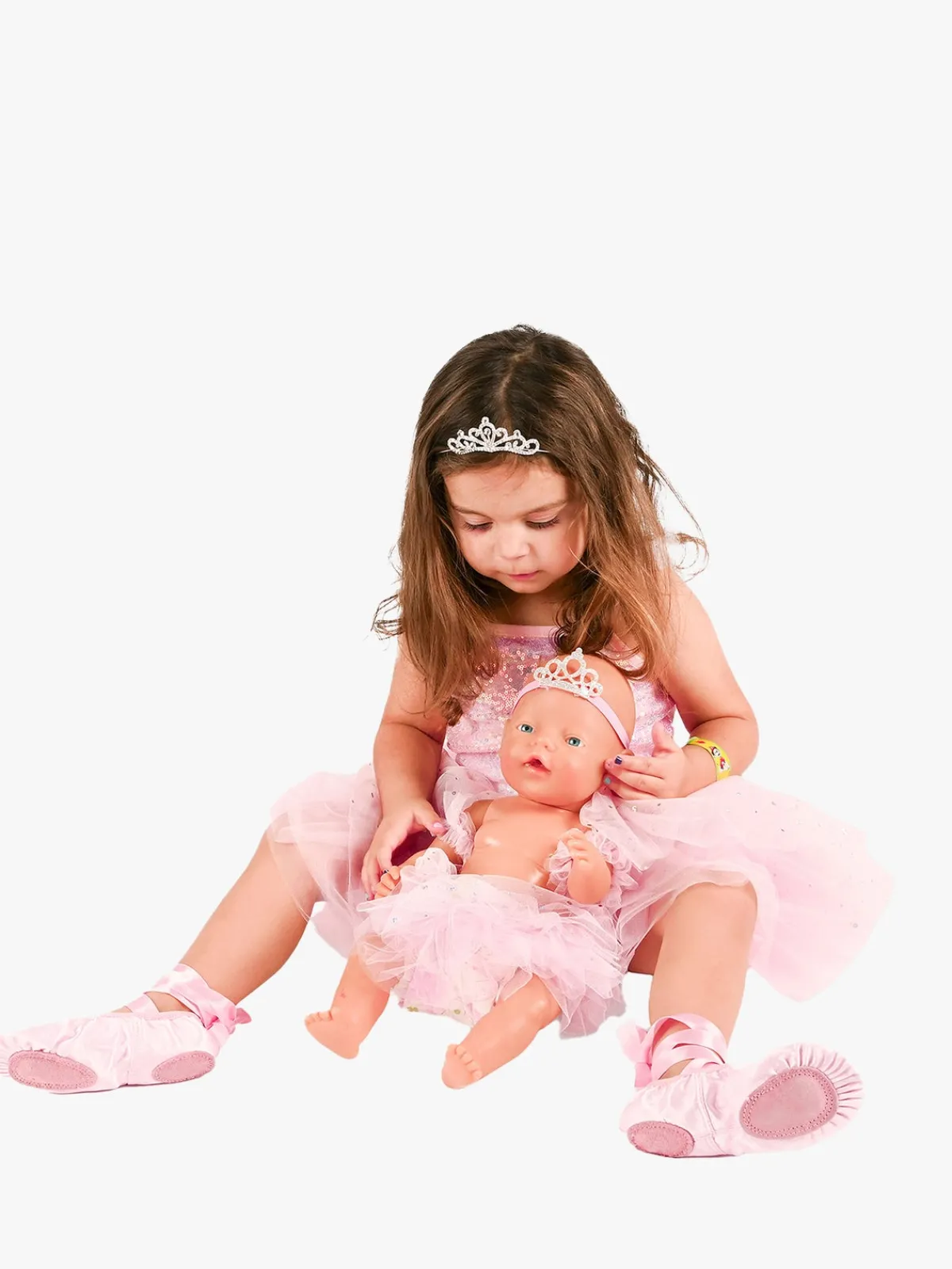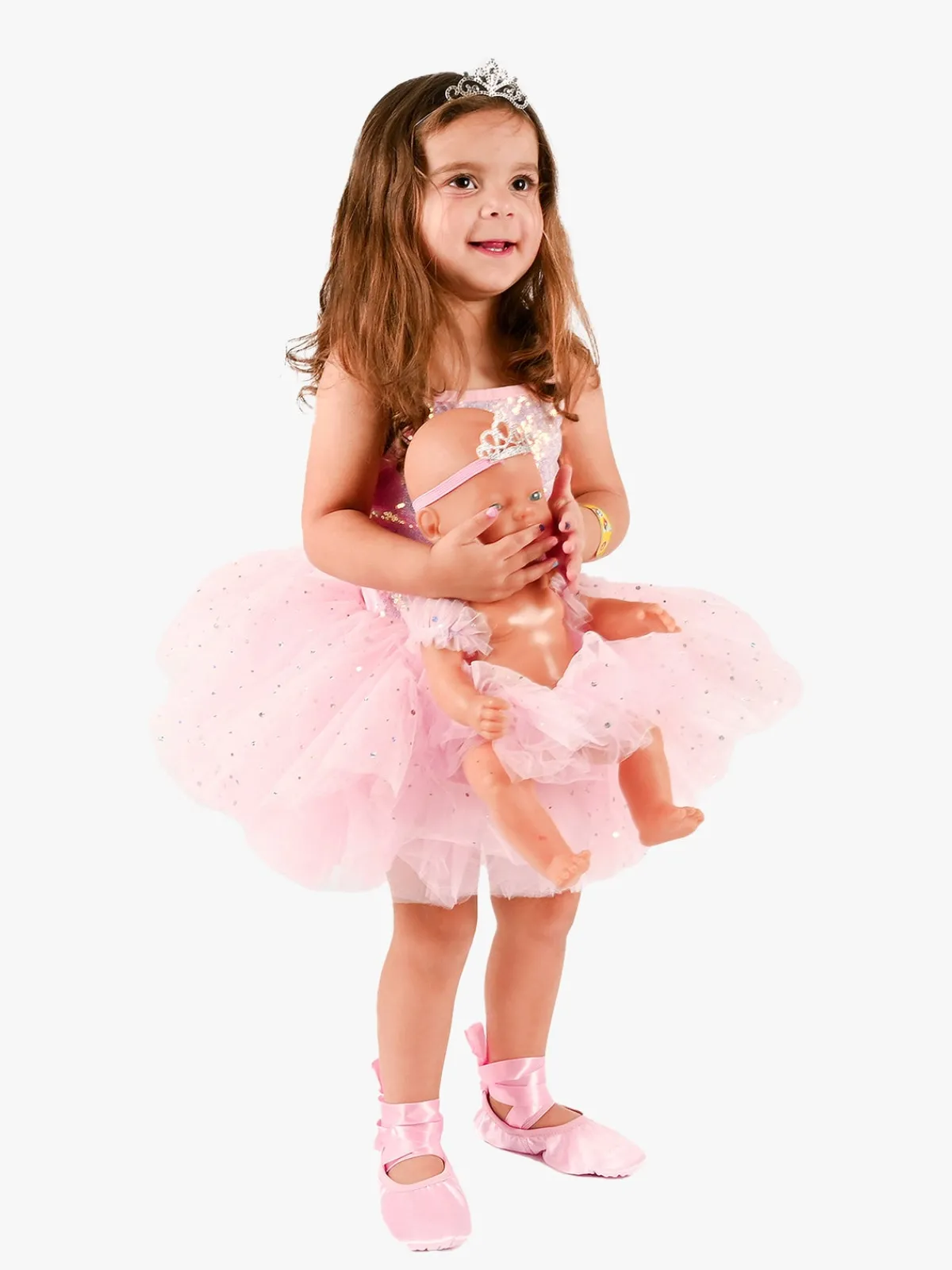 – Indeholder: 1 kjole, 1 par ballerinasko, 1 ærmedetalje, 1 dukke med en dukketiara og en nederdel.