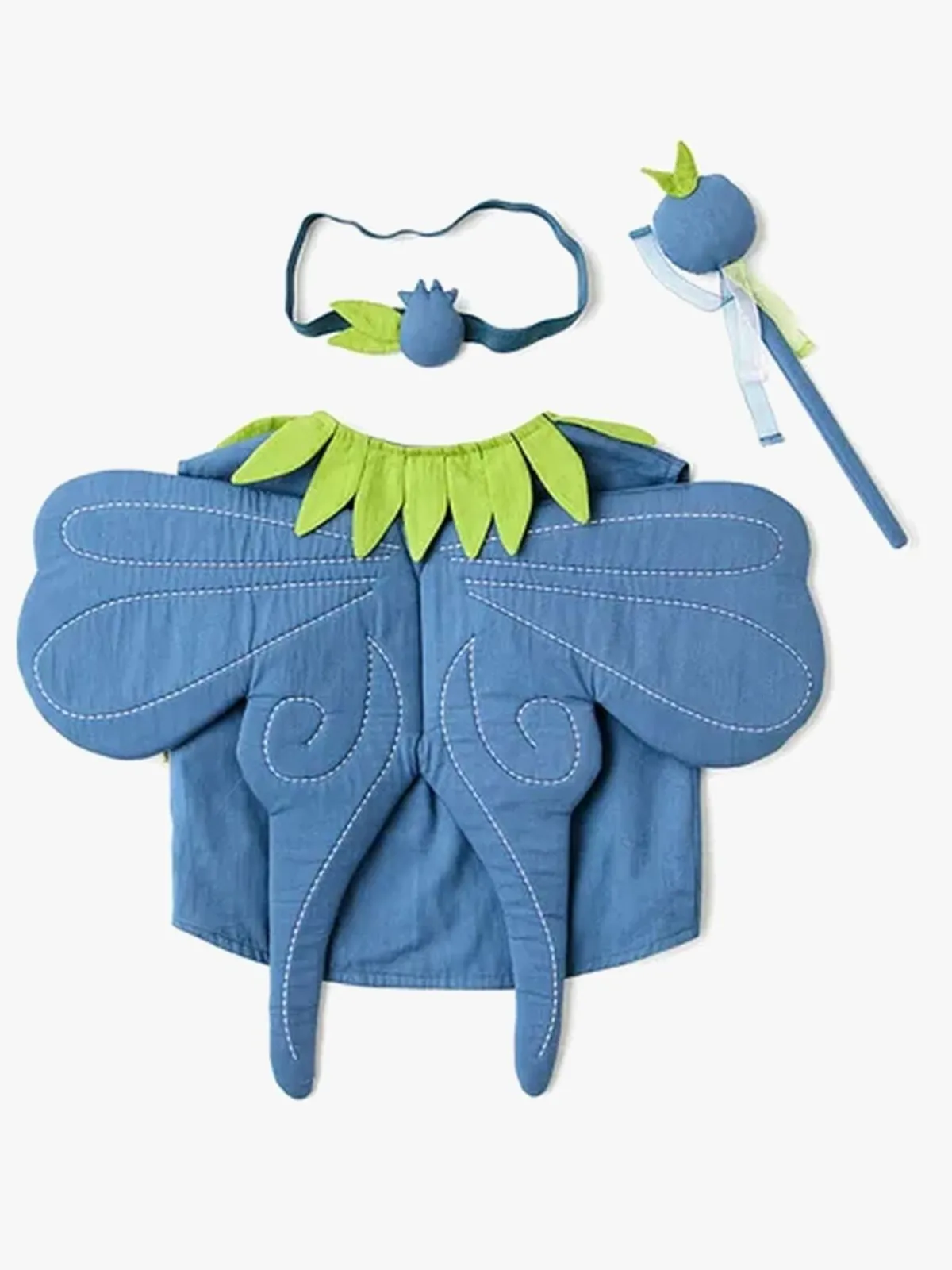 – Indeholder: 1 vest med vinger, 1 hårbånd med et dekorativt blåbær, 1 tryllestav.