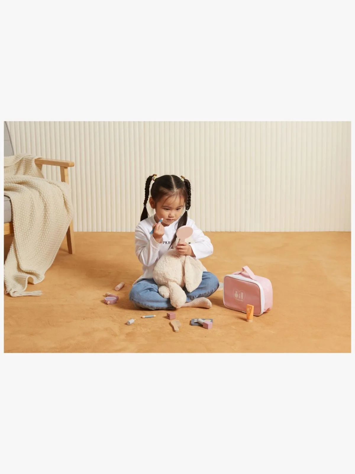 – Indeholder en kam, en øjenskyggepalet, en øjenskyggebørste, en brynblyant, en creme, en ansigtspudder med spejl, to læbestifter, to neglelakker, en parfume og et etui til at opbevare alt i.