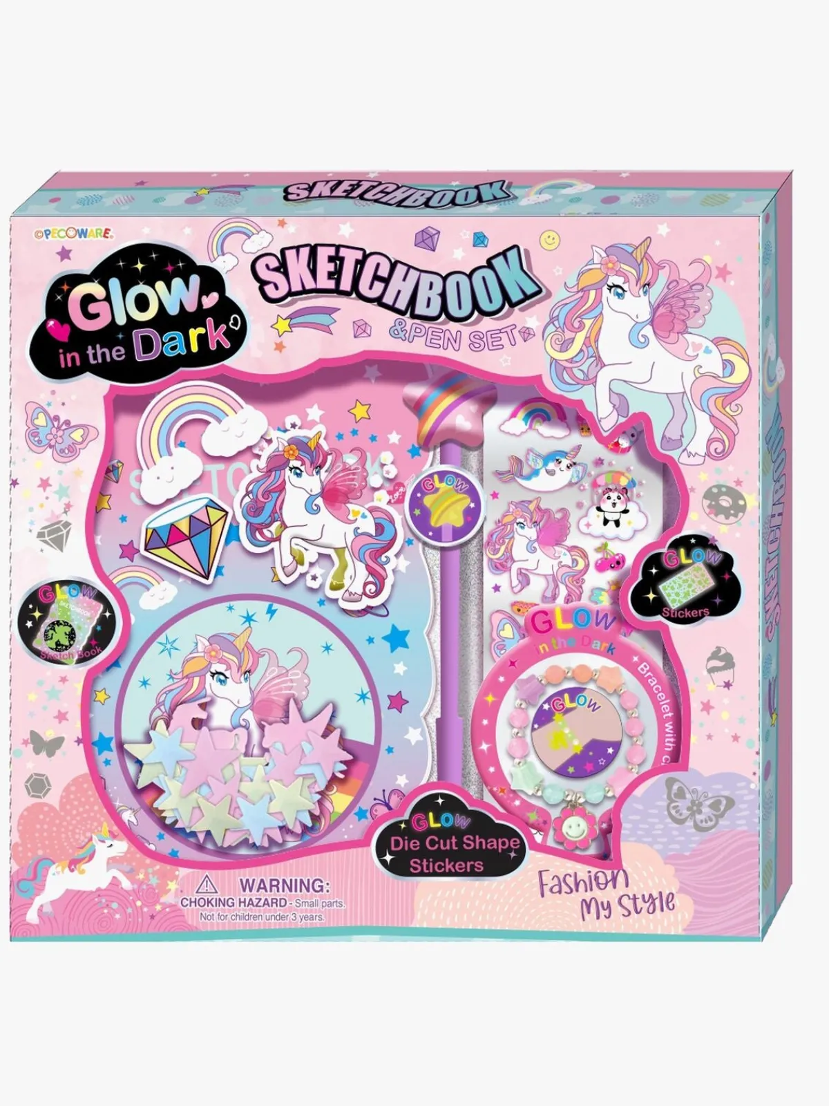 – Indeholder: sød pen, klistermærker, armbånd, glow in the dark-notesbog og stjerner.
