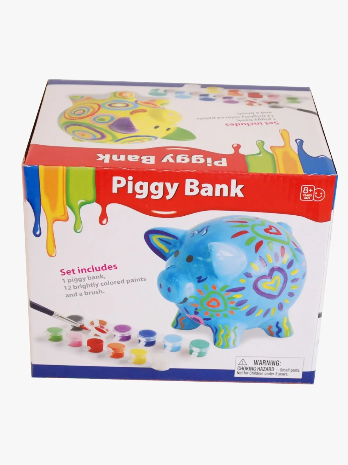 – Indeholder: 1 sparegris, 1 pensel, 12 malerfarver.
