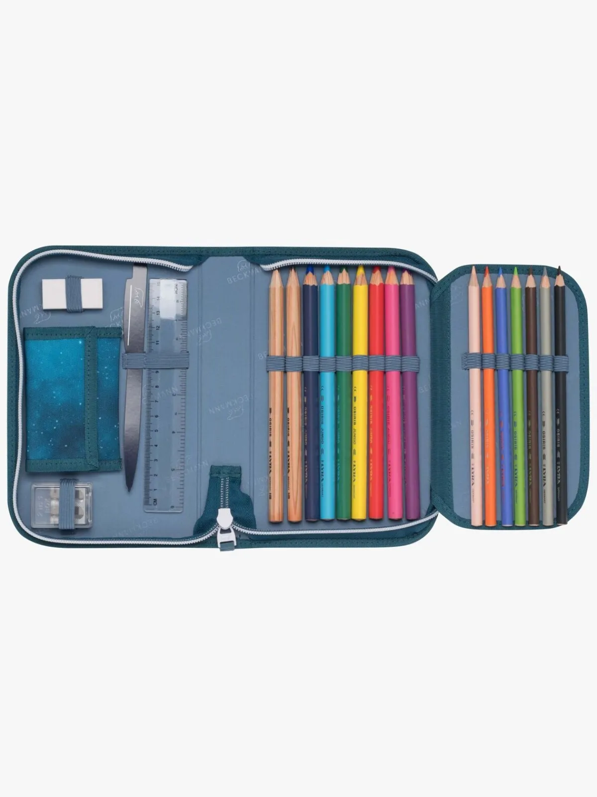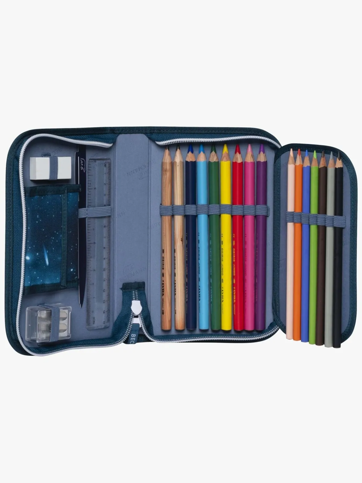 – Indeholder: 2 jumboblyanter, 7 jumbofarveblyanter, 7 farveblyanter, 1 viskelæder, 1 lineal, 1 blyantspidser, 1 pung.