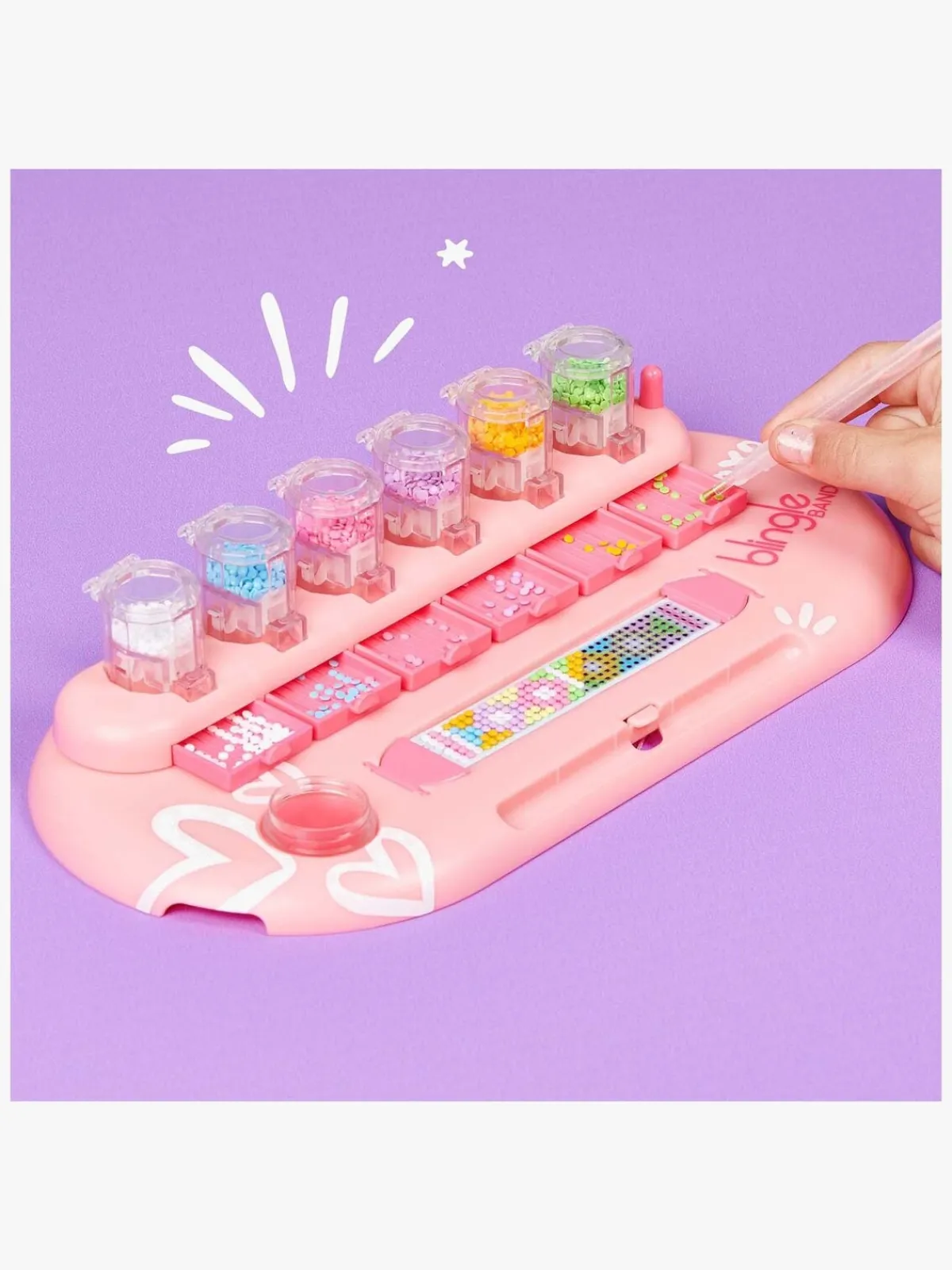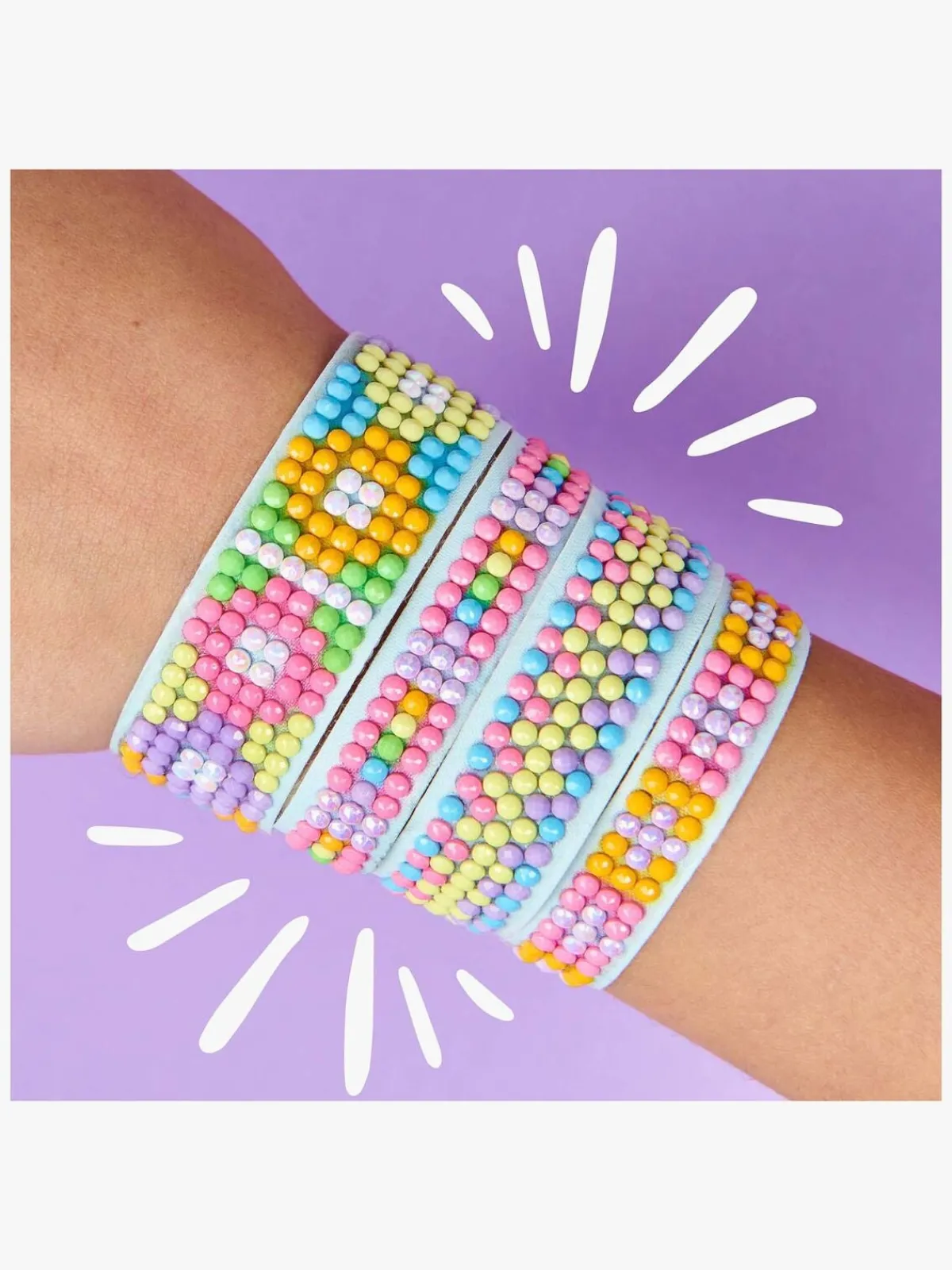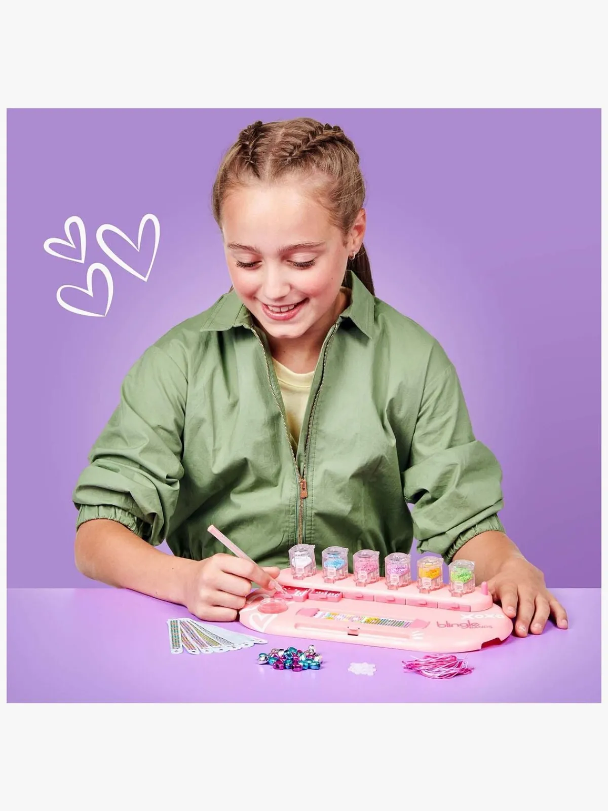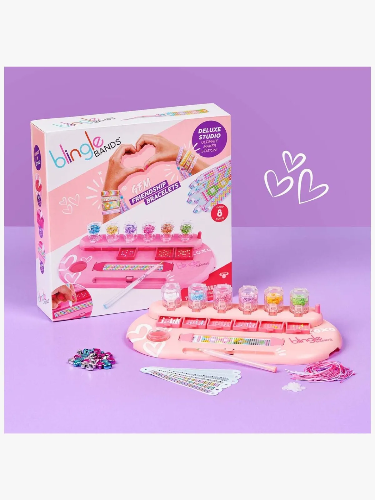 – Indeholder 8 armbånd med bånd og perler i 8 farver, en Blingle-pen og voks m.m.
