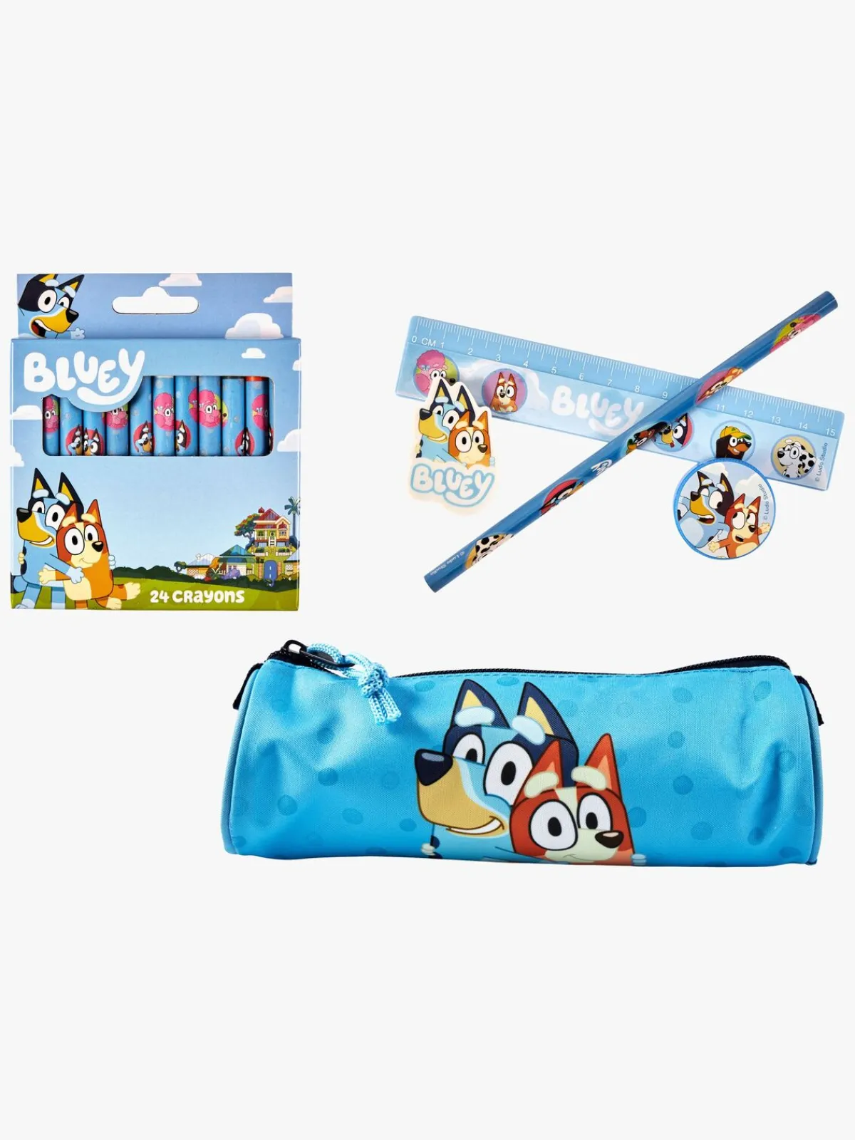 – Indeholder: 1 penalhus, 24 farvekridt, 1 blyant, 1 viskelæder, 1 blyantspidser, 1 lineal.