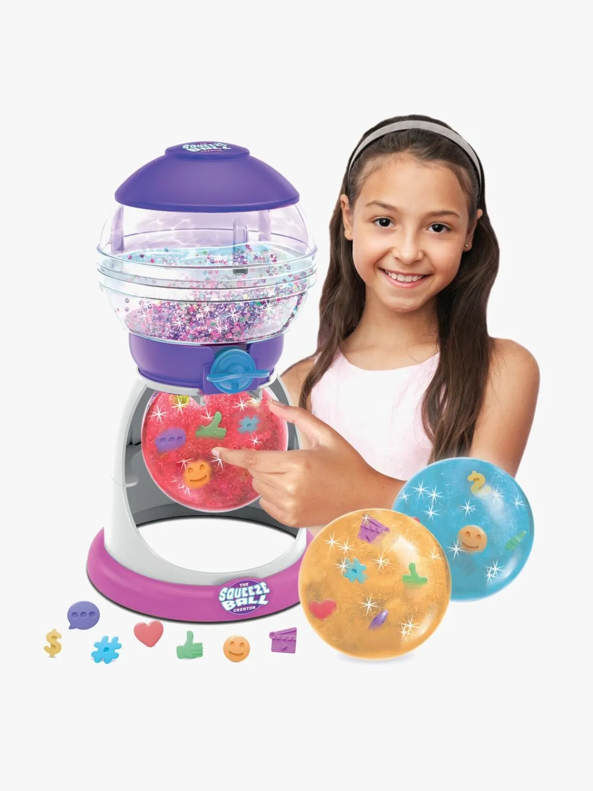 – Indeholder: 1 Squeeeze Ball Creator maskine, 3 klemmebolde, 21 dekorationer.