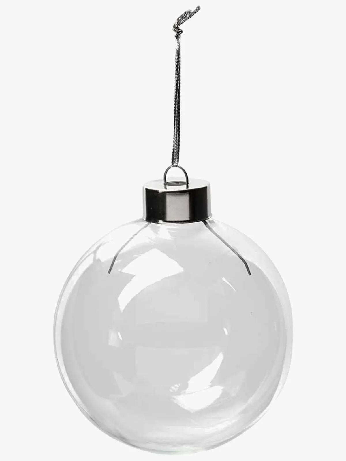 Julekugler fra Creativ Company. Du kan dekorere kuglerne, eller hænge dem op som de er. De har metalophæng og leveres i en flot æske. Tåler ikke at opvarmning.