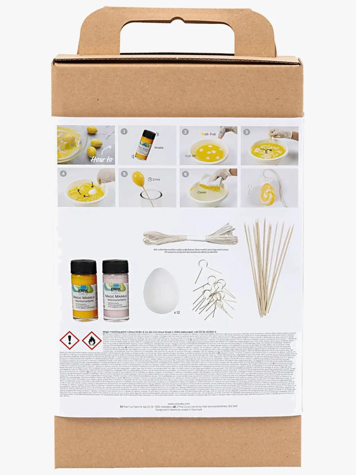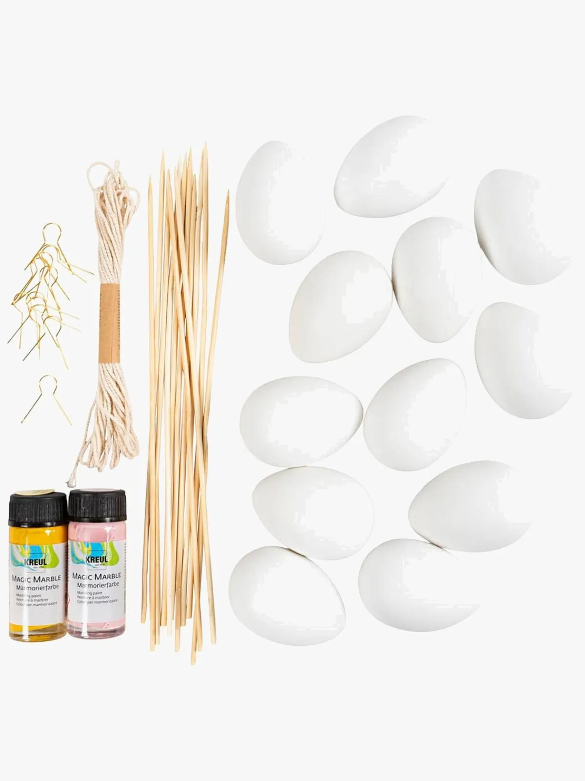 – Indeholder: magisk marmoreringsmaling, plastikæg, blomsterpinde, bøjle og snor.