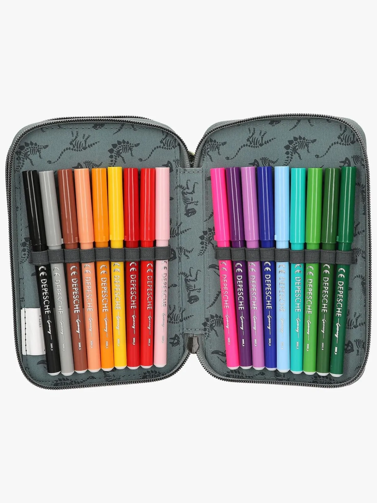 – Indeholder: 1 penalhus, 18 farveblyanter, 18 tusser, 2 blyanter, 1 saks, 1 limstift, 1 blyantspidser, 1 lineal, 1 viskelæder.