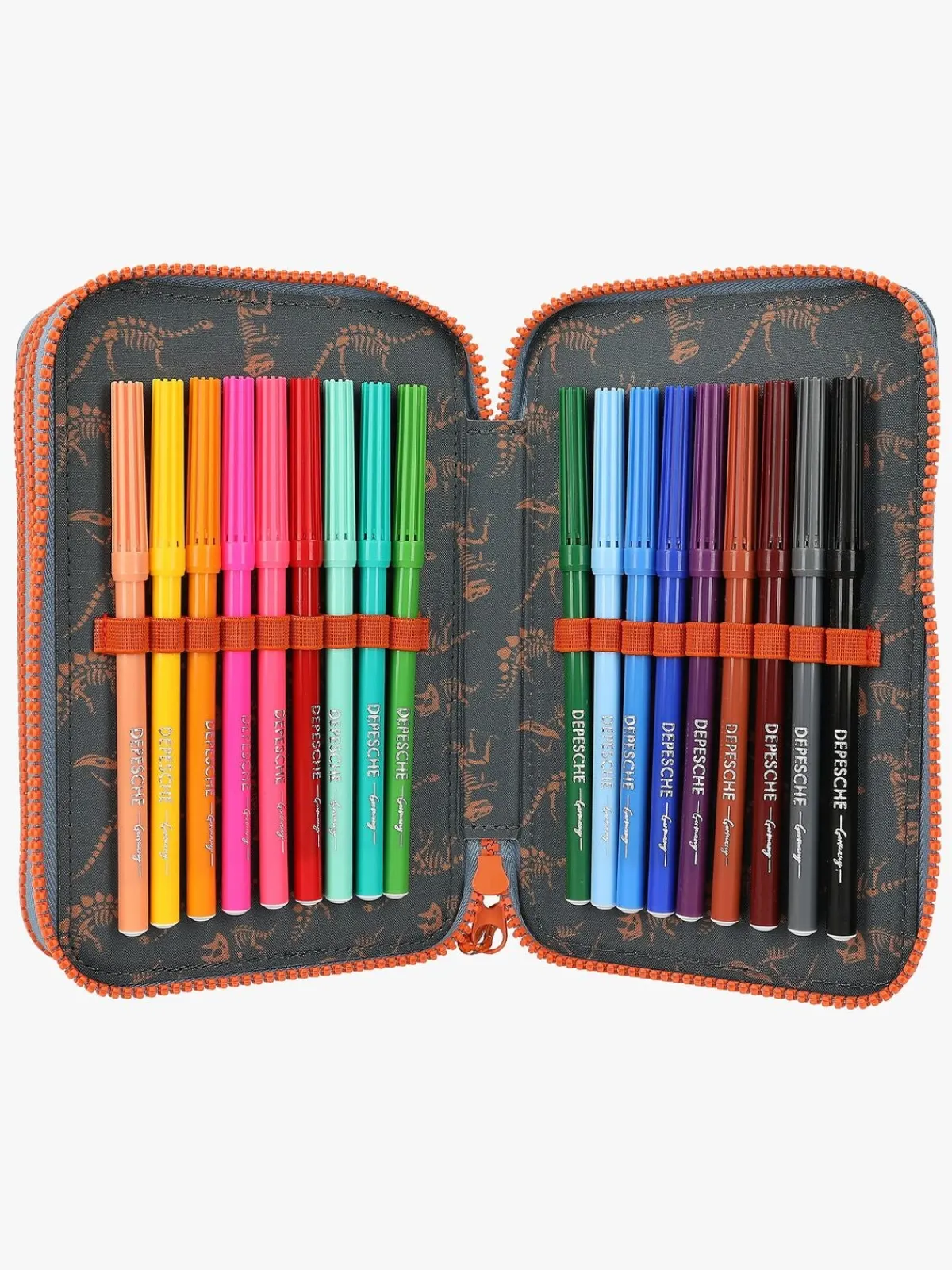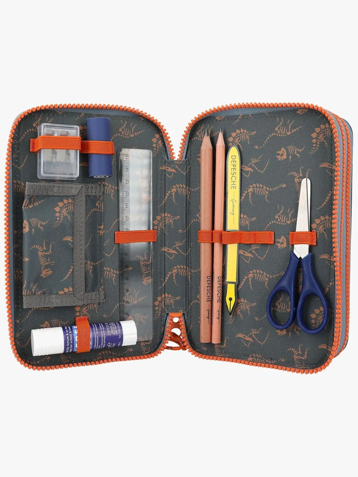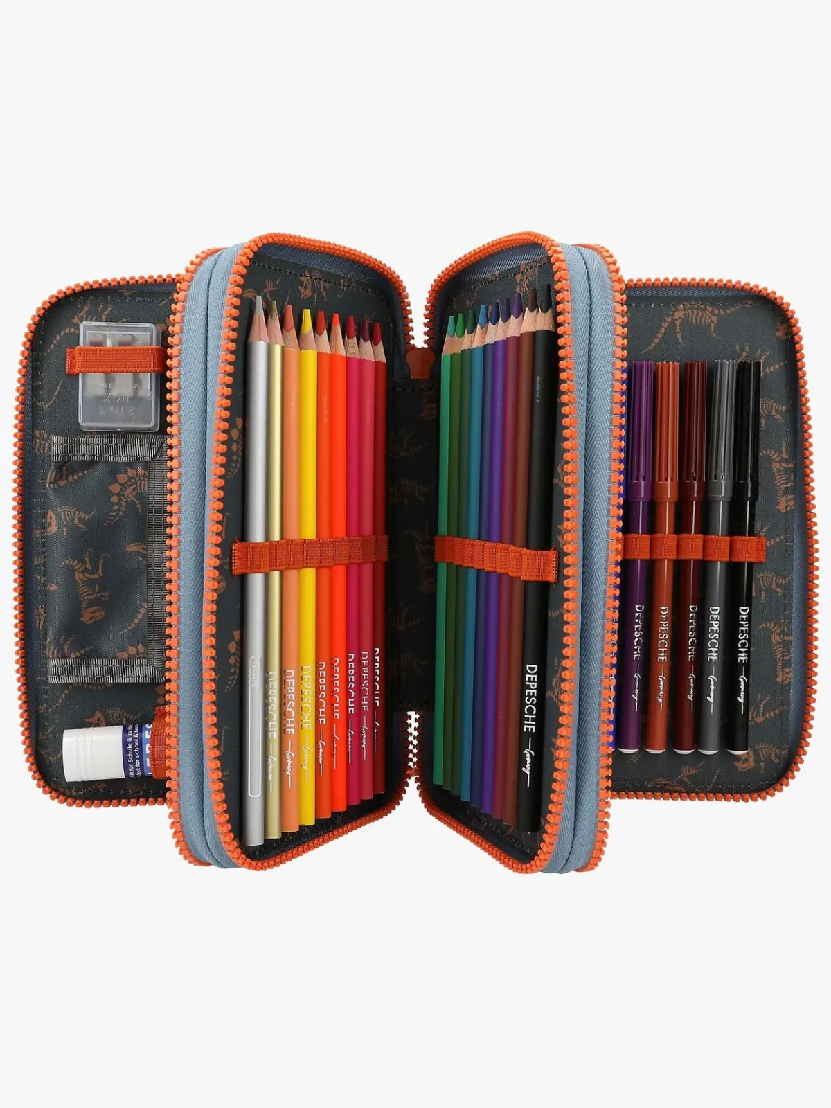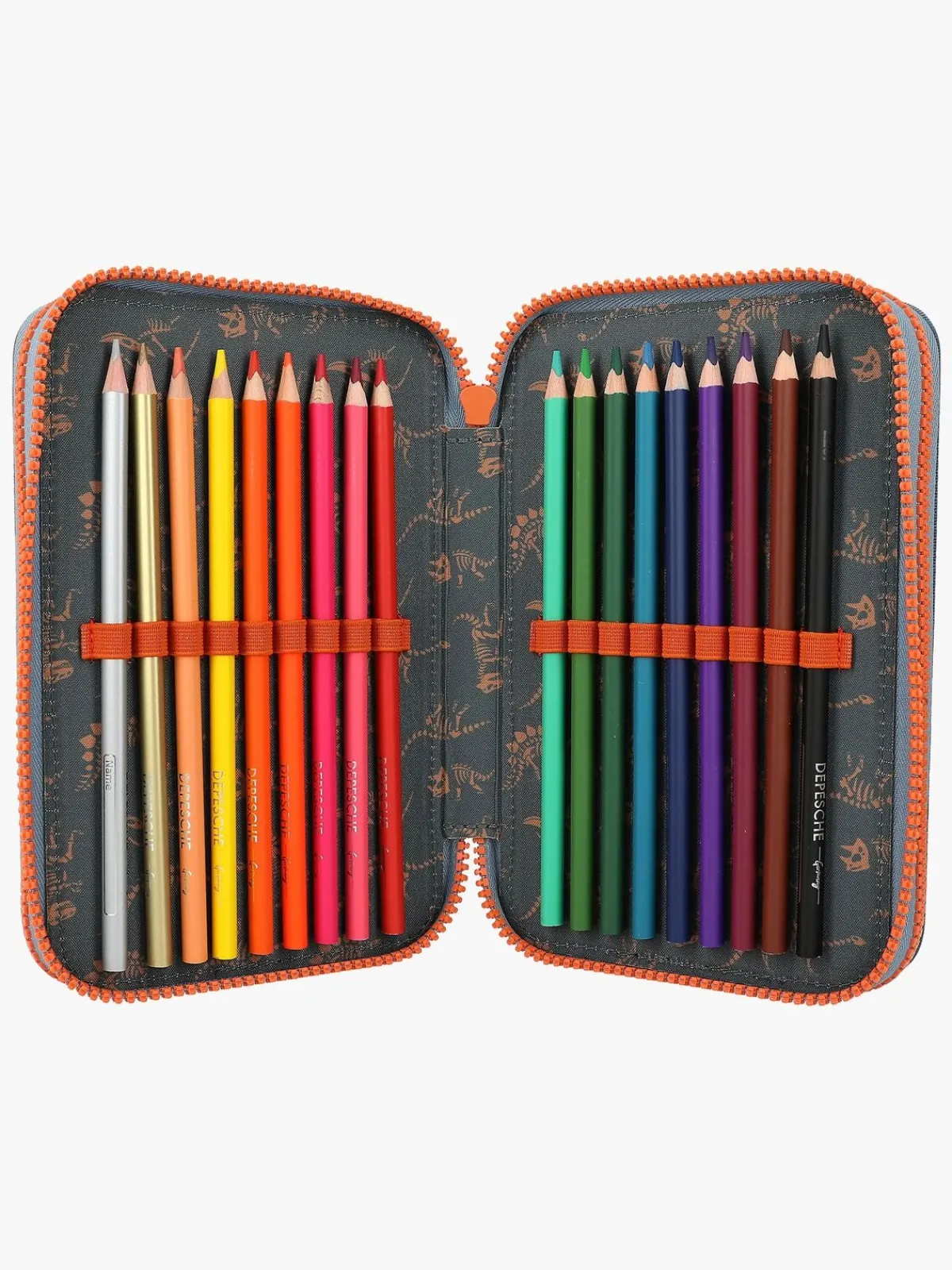 – Indeholder: 1 penalhus, 18 farveblyanter, 18 tusser, 2 blyanter, 1 saks, 1 limstift, 1 blyantspidser, 1 lineal, 1 viskelæder.