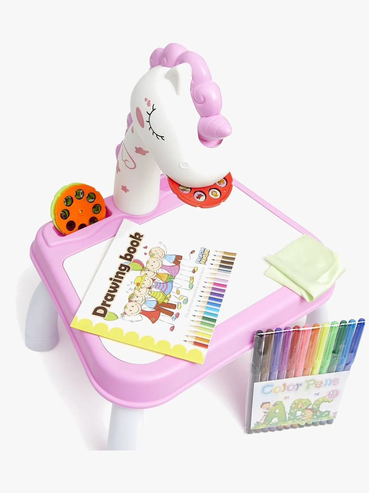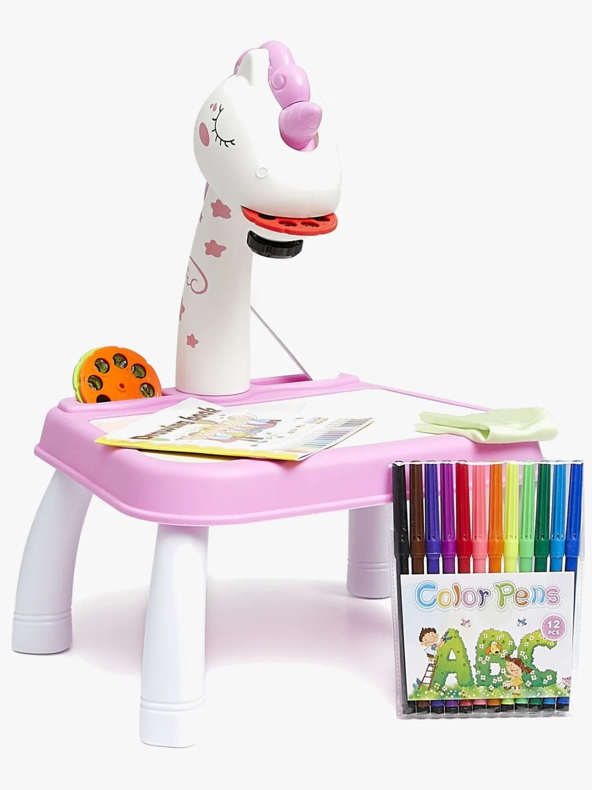 – Indeholder: 1 tegneblok, 3 projektionsskiver, 12 vandbaserede tusser, 24 mønstre, 1 aftørringsklud.