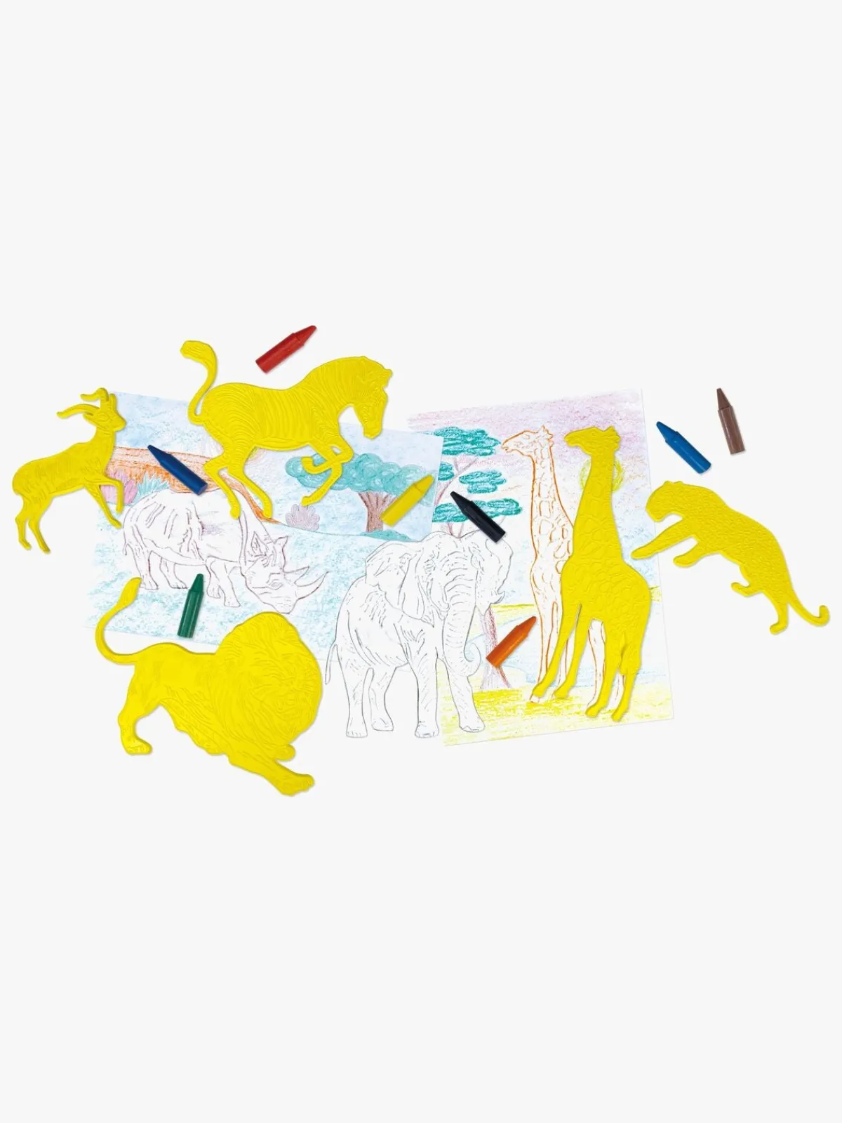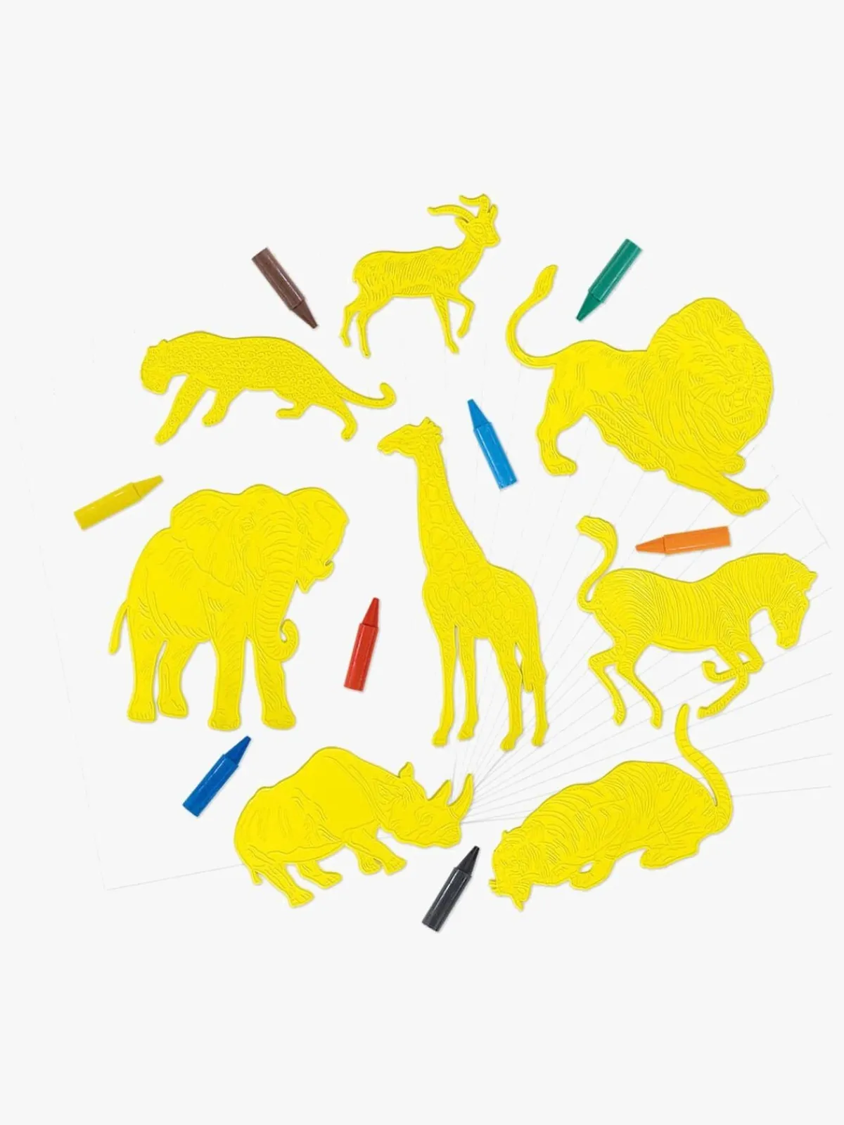 – Indeholder: 8 dyreskabeloner, 20 papirer, 8 voksfarver, 1 vejledningsmanual.