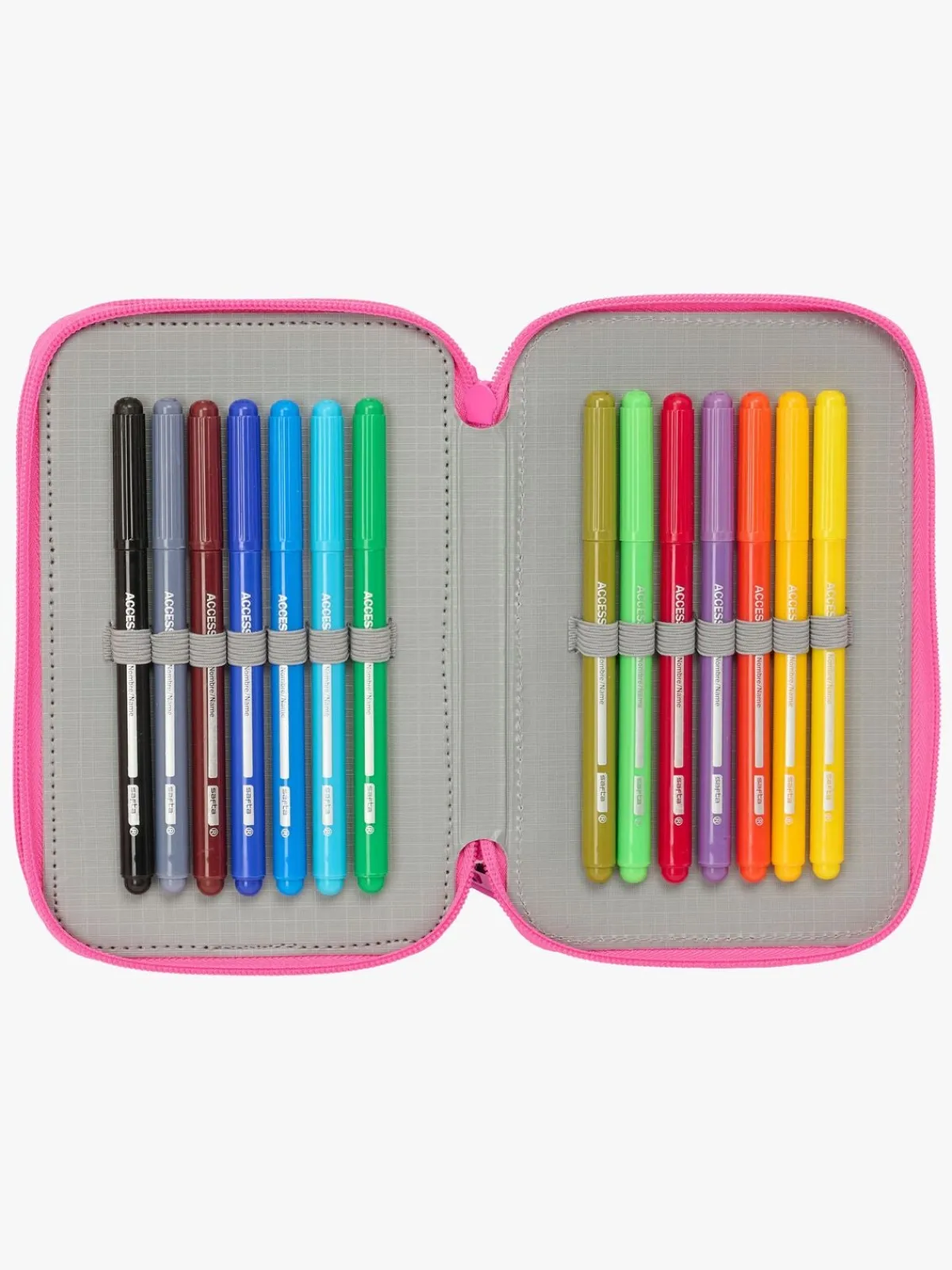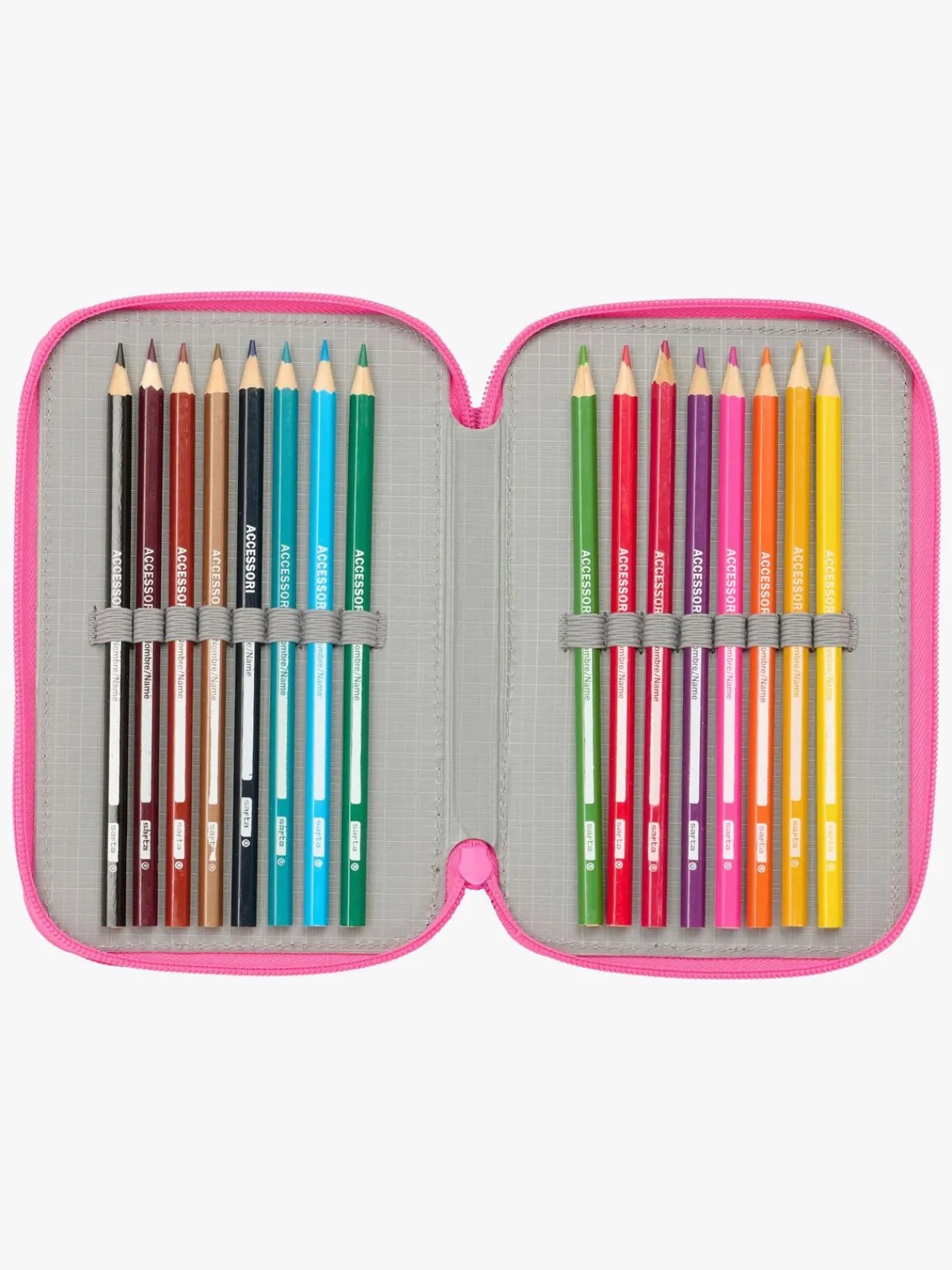 – Indeholder: 1 penalhus, 1 viskelæder, 1 blyant, 2 kuglepenne, 1 blyantspidser, 2 linealer, 16 farveblyanter, 14 tusser.