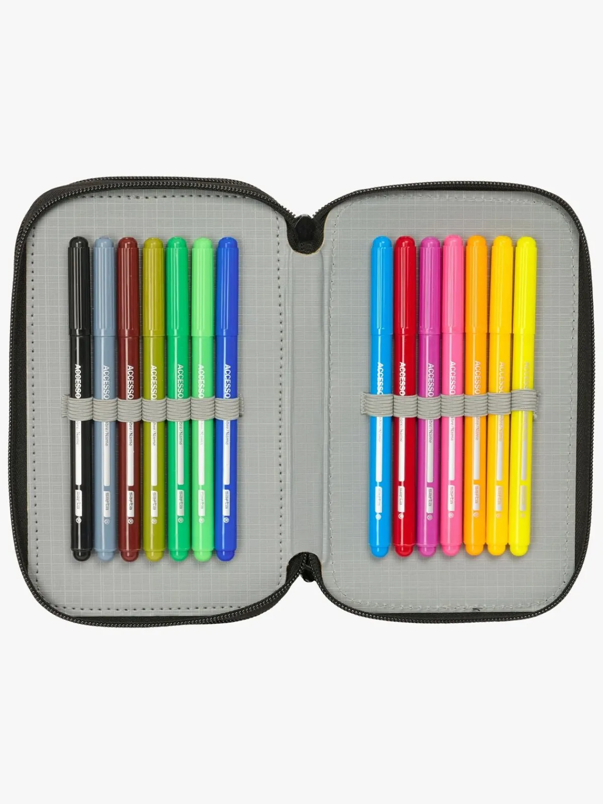 – Indeholder: 16 farveblyanter, 14 tusser, 2 kuglepenne, 2 linealer, 1 viskelæder, 1 blyant, 1 blyantspidser, 1 penalhus.