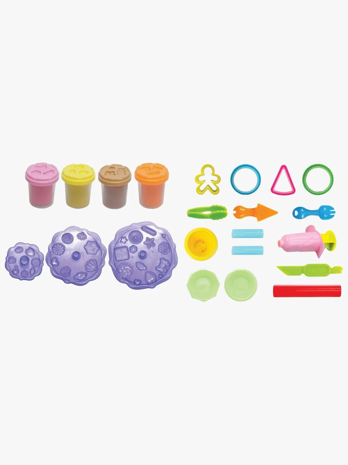 – Indeholder: 1 kagefad, 2 tallerkener, 1 kagespade, 1 gaffel, 1 tang, 1 kniv, 4 forme, 1 kanyle, 1 kagerulle, 4 bøtter med modellervoks.