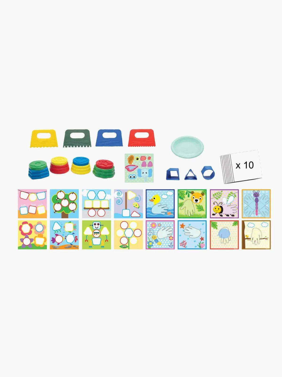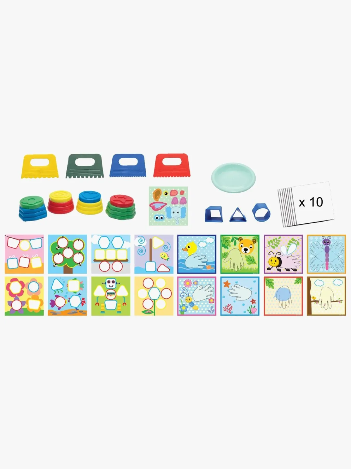 – Indeholder: 1 opbevaringskasse, 12 redskaber, 16 designskabeloner, 10 papirark.