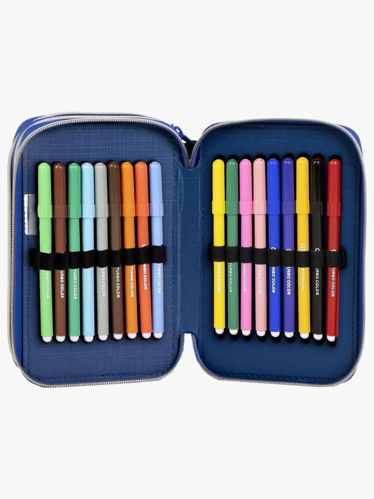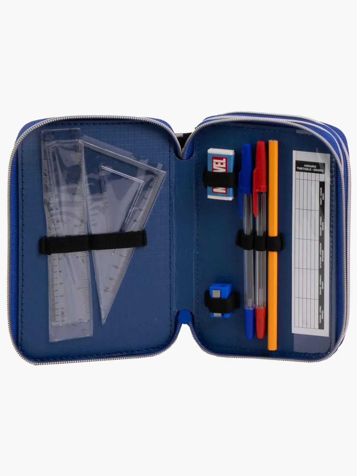 – Indeholder: 1 penalhus, 18 farveblyanter, 18 filttusser, 1 viskelæder, 1 blyantspidser, 2 kuglepenne, 2 blyanter, 1 lineal, 1 vinkelmåler.